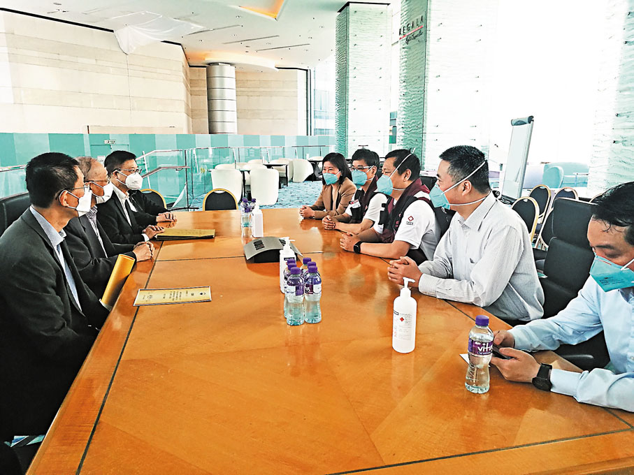 內地援港醫療隊總領隊、中山大學附屬第三醫院感染科教授崇雨田,副總領隊、廣州中醫藥大學副校長張忠德教授,副領隊李勇教授、廣東省衞健委馮宏祥處長、 廣東省港澳辦邵瑾處長,作為援港醫護的代表,與一眾書畫家代表進行了友好熱情的交流。