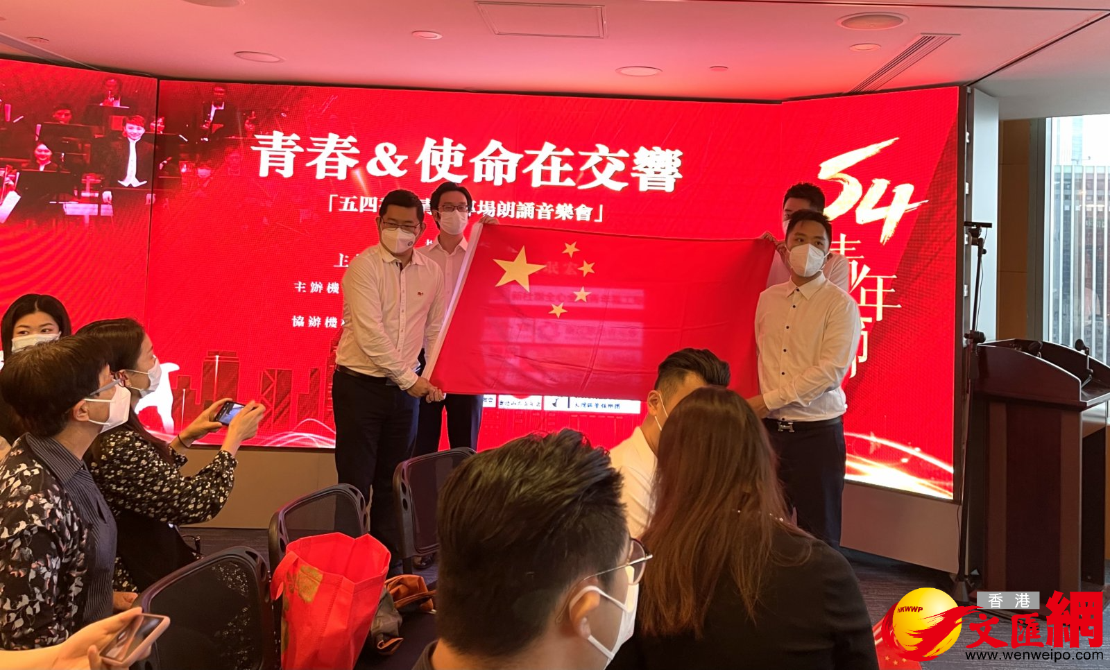活動以「傳承五四精神,奉獻香港青年力量」為主題,有《追光歷史》《致敬青春》《鑄夢未來》三個章節,詩歌朗誦與管弦樂演奏交錯進行。香港湖南青年會執行會長孫秀祖、中國傳媒大學香港校友會副會長兼秘書長劉珉宏擔任主持人和朗誦者,二人將李大釗的《青春》、魯迅的《熱風·隨感錄四十一》、《湘江評論》關於青春的描述、《朗讀者》節目裏的《青春》、王蒙的《青春萬歲》等文段逐一朗誦。「願中國青年都擺脫冷氣,只是向上走⋯⋯」「我想念你們,招呼你們,並且懷着驕傲,注視你們。」二人聲情並茂的朗誦激起在場觀眾的共鳴。