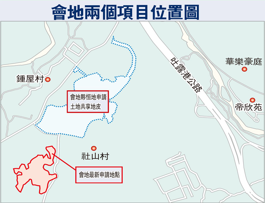 申請文件顯示,今次近56萬平方呎地盤中,包括12.21萬平方呎為政府土地,項目總樓面約171.15萬平方呎,其中公營房屋日後擬以7.94倍地積比率發展,興建4幢38層高綜合大樓(另有1層地庫及1層停車場),其中住用樓面約116.78萬平方呎,非住用樓面約3.95萬平方呎。至於私人住宅部分則3.1倍地積比率,將建2幢住宅、2幢非住宅及1幢綜合大樓,最高樓宇高度28層(另有2層地庫),可建總樓面約50萬平方呎,當中包括3,229平方呎非住用樓面。值得留意的是,去年8月時,會德豐曾夥拍恒地提交了大埔林村的「土地共享先導計劃」申請,位置正處於今次會地林村地盤旁邊。該地盤規模較今次申請龐大得多,佔地207.75萬平方呎,提供約12,120個單位,總可建樓面達到694.61萬平方呎。