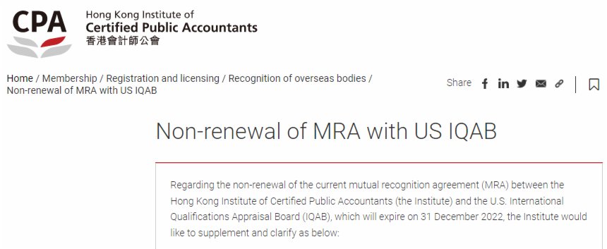 大公文匯全媒體報道:香港會計師公會早前公布,與美國國家會計委員會全國協會(IQAB)的互認協議,將於2022年12月31日到期。