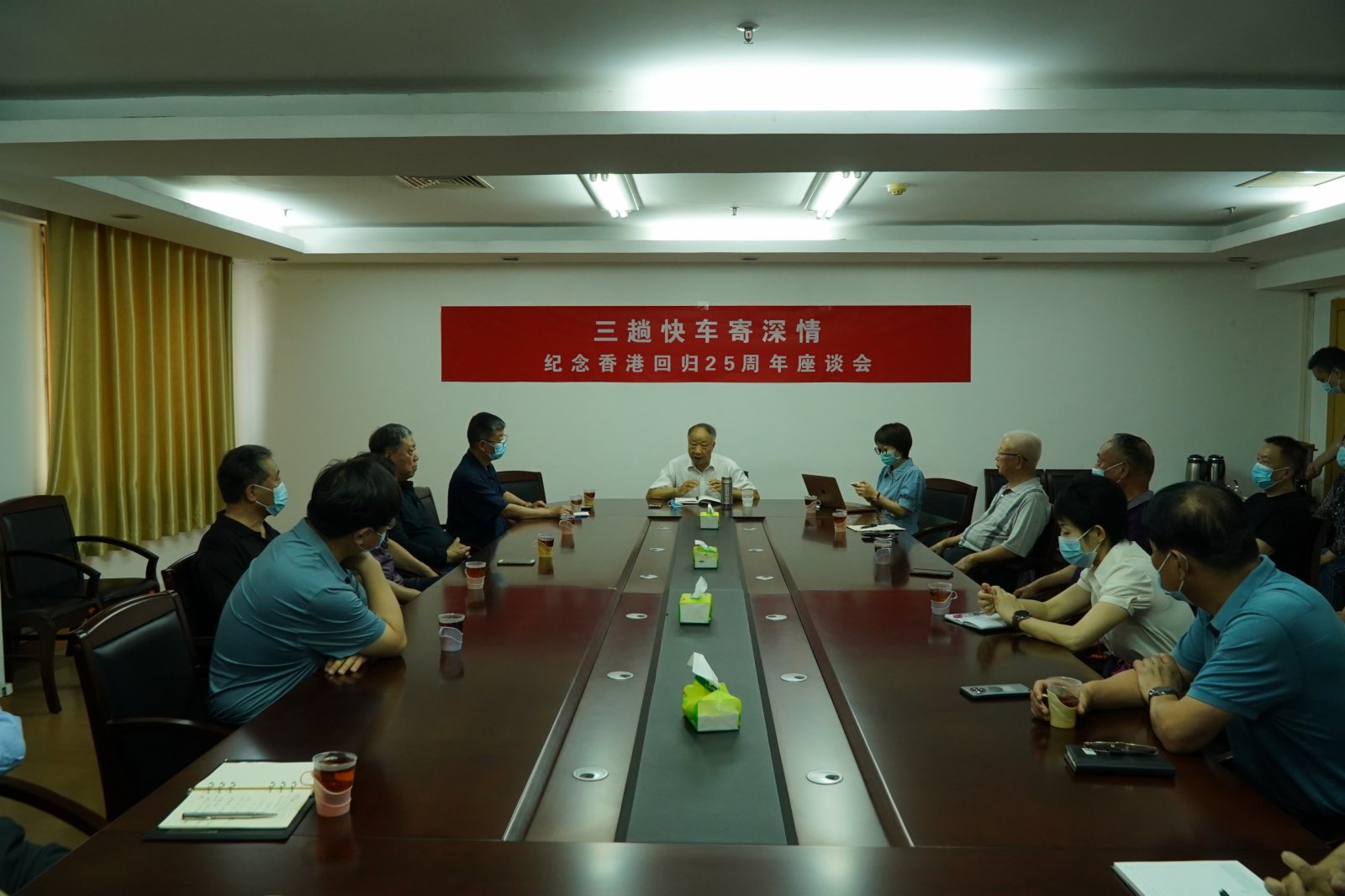 座談會上,大家情緒高漲,談笑風生氣氛十分活躍。早已退休的老火車司機方福喜、現任的鄭州局集團公司離退休管理部部長馬長樂和科副科長孫寶才,也從自己的親身經歷和不同側面,生動地講述了「三趟快車」的故事。今年40多歲的艾霞,父母都是鄭州北站的員工,1991年她走進鐵路在鄭州北站成了一名鐵路工人。她聰明好學文字和語言表達有過人之處,經組織培養幾年後從事宣傳工作。1997年7月1日前夕,鄭州北站組織團員青年開展「喜迎香港回歸」活動,場面熱烈,主題突出,激情四射,激發了艾霞的創作靈感,很快一篇《一千九百九十九個祝福》的報道見諸於報端。文章雖短,句句真情,衷心祝福香港同胞明天更加美好,表達了千千萬萬中原鐵道兒女期盼香港回歸的喜悅心情……