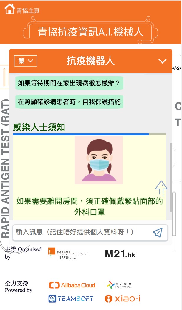 該服務暫為期3個月至8月23日,其間青年義工定期更新抗疫資訊和資料庫,根據使用者的體驗情況,改善問答組合,支持公眾同心應對反覆的疫情。