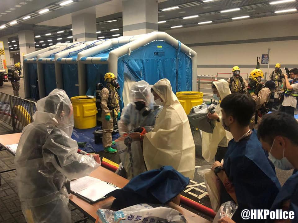 大公文匯全媒體報道:警務處聯同消防處,今日(10日) 凌晨在香港會議展覽中心二期,進行跨部門化生輻核反恐演習,加強各部門在大型行動中的協調合作,及在事故中的應變能力。