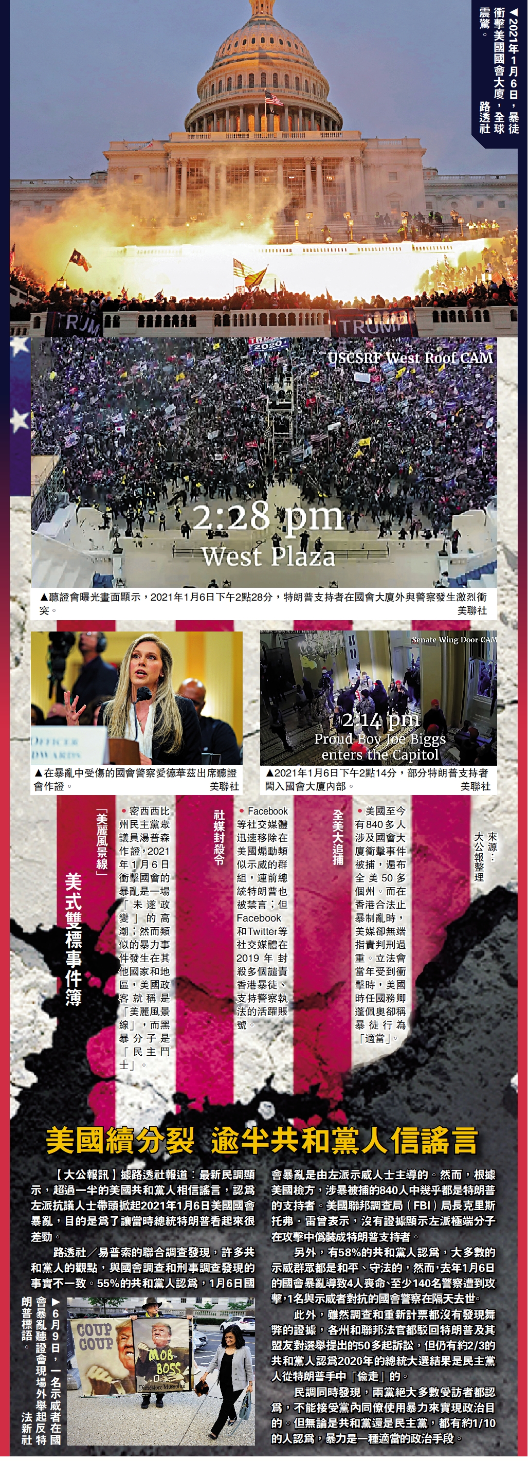 另外,委員會還公布了此前未曾曝光過的驚人畫面,顯示暴徒衝擊國會時的場景。法新社指,這段影片比任何黃金時段犯罪戲劇還要暴力、令人瞠目結舌,然而這並非戲劇,而是在現實世界中真實上演。