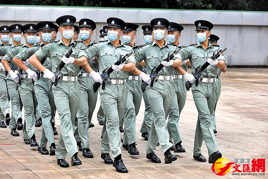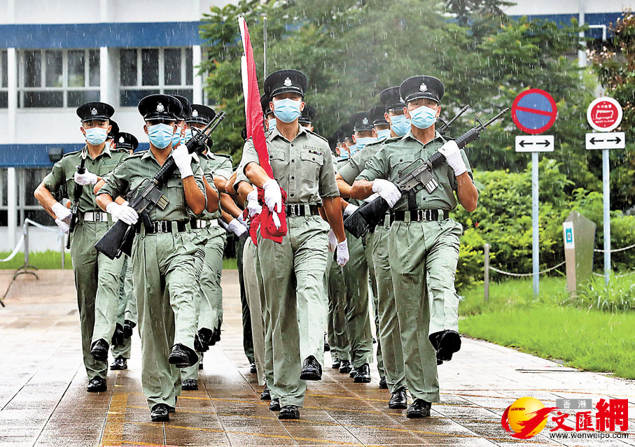 (香港文匯報記者 劉明)7月1日是香港回歸祖國25周年的大日子,並將於灣仔金紫荊廣場舉行升旗禮。當日,警隊亦將全面改用中式步操,香港文匯報記者昨日率先直擊護旗方隊為七一升旗禮加緊操練,細雨紛紛無阻隊員的專注性,邁出步伐擲地有聲,動作流暢整齊。將於七一當天擔任升旗手的香港警察學院操練及槍械訓練組警長黃梓勤表示,參與這項隆重儀式的警務人員和警察學院學員不斷訓練,全面改用中式步操能進一步體現警隊各級人員的國家觀念,以及彰顯民族情感。