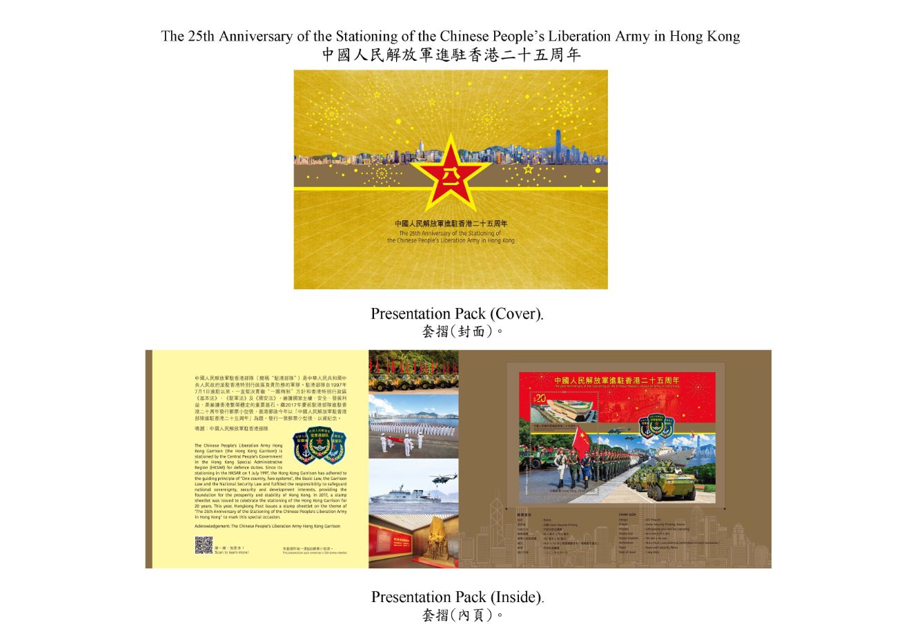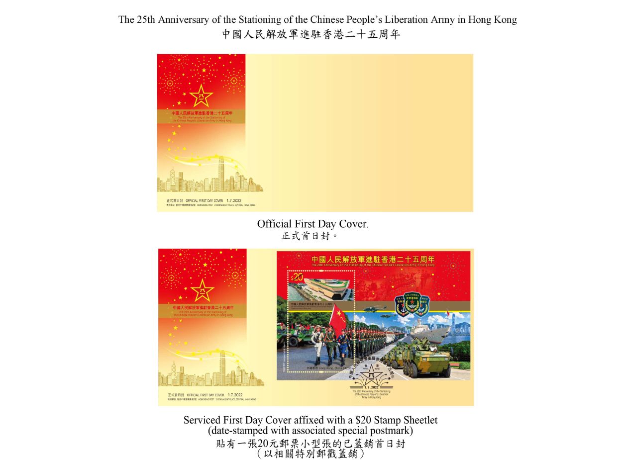 中國人民解放軍駐香港部隊自1997年進駐香港以來,一直堅決貫徹「一國兩制」方針、香港特別行政區基本法、《中華人民共和國香港特別行政區駐軍法》及香港國安法,維護國家主權、安全及發展利益,是維護香港繁榮穩定的重要基石。香港郵政以「中國人民解放軍進駐香港二十五周年」為題,發行一張郵票小型張,以資紀念。