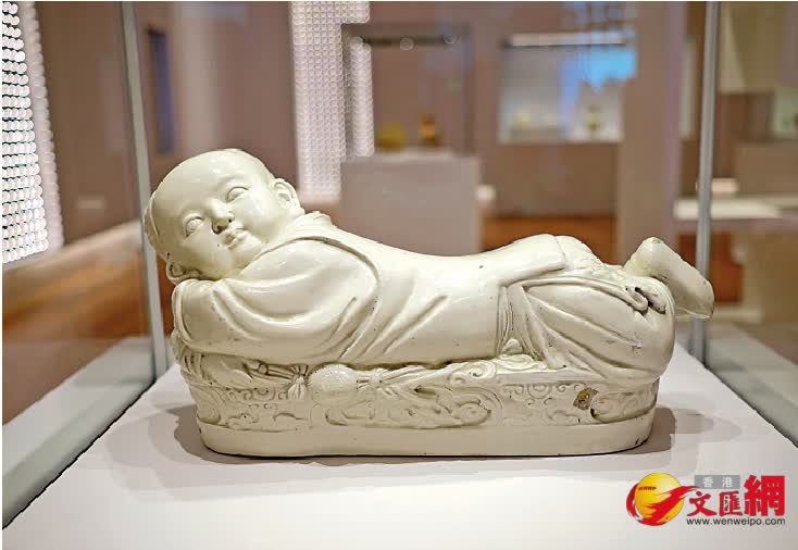北宋「孩兒枕」則由宋代「五大名窯」之一的河北定窯所燒製,皇帝乾隆甚為喜愛,曾為其賦詩多首,其中一首謂:「伏猶曲四體,醒自瞪雙晴,憐爾供人寐,已恒寐不成。」王伊悠表示,該枕台北博物館存有兩個,北京博物館得一個,亦借出予香港展覽,彌足珍貴。