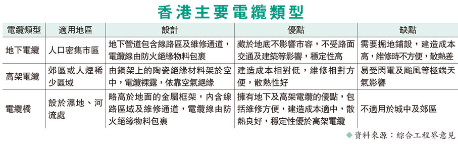 他指出,電纜設施起火通常有兩大原因:一是線路或設備接駁處出現問題,使用時產生火花可能引起失火;另一種可能就是電力系統持續負載過高,電纜在密閉空間內長時間過熱引起燃燒。然而無論是哪種原因,他認為在電纜橋中發生的幾率都極低,「電纜橋內電纜和地下電纜原理相同,均有防火絕緣物料包裹,就算過熱也很難出現整座橋燃燒的情況,因此今次事件原因頗為異常。」