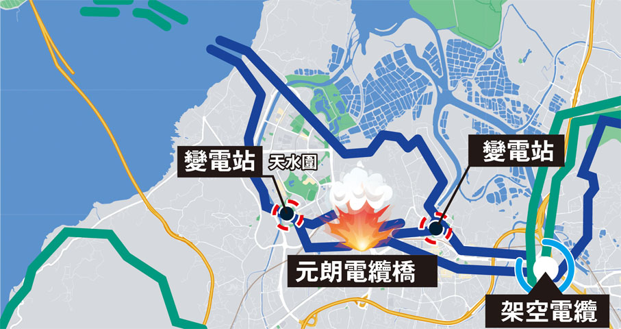 同時,電纜橋還設有安全機制,「當其中一組電纜出現故障時,就會啟用餘下兩組電纜,但今次事件顯示該機制未被啟動。」即使電纜橋燒毀,通常情況下還有基本後備機制——即「環式供電」補鑊。「但今次電纜橋燒毀,直接導致3區大範圍停電,懷疑朗屏該處並未使用環式供電。」
