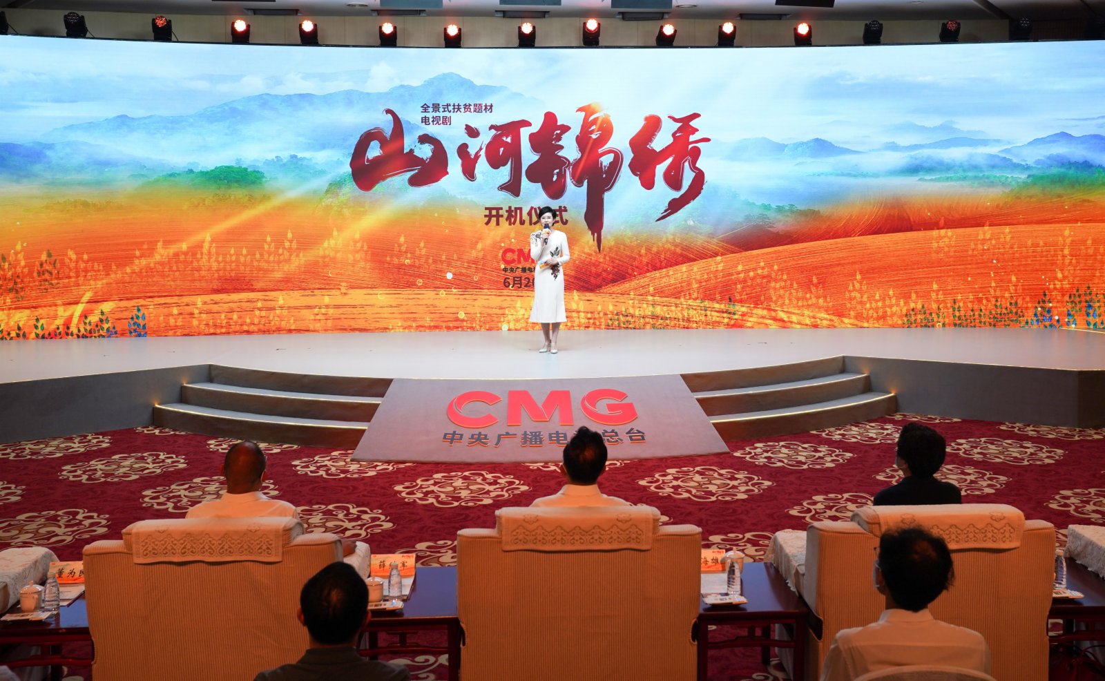 史詩般呈現脫貧攻堅偉大歷程的電視劇《山河錦繡》6月26日在北京開機。中宣部副部長、中央廣播電視總台台長兼總編輯慎海雄出席活動。