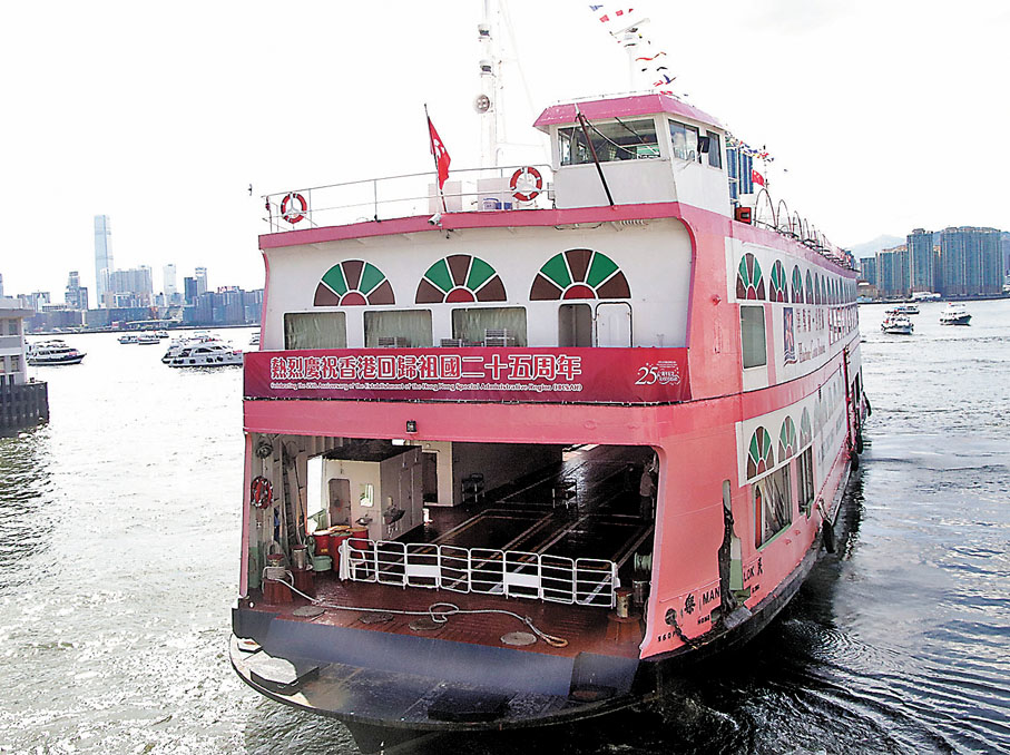 香港文匯報訊 香港各區近日紛紛慶祝香港回歸祖國25周年的大日子,東區民政事務處為此將舉辦一系列慶祝活動,昨日率先於北角匯商場外擺放「打卡」裝置,吸引市民大眾參與活動,同場舉辦「東區賀回歸海陸巡遊」,由洋紫荊「民樂號」帶領24艘遊艇在東區海域巡遊。主辦方期望透過一系列別開生面的慶祝活動,與東區市民分享紀念回歸的喜悅,大家一同乘風破浪,勇往直前。