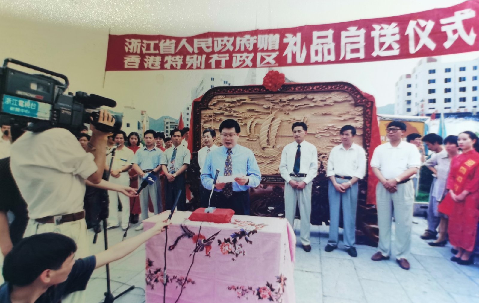 1997年6月11日,經過東陽木雕總廠幾十位老師傅的精心製作,這幅飽含着浙江人民對香港回歸祝福之情的作品終於完工,並被運往香港。「一直沒機會去香港現場看看,但有不少朋友告訴我,這幅屏風現在就擺放在香港特區政府接待廳的會議室裏,很顯眼。等疫情穩定後,我們一家人計劃安排一次香港之旅,希望有機會能在香港再看到《航歸》。」