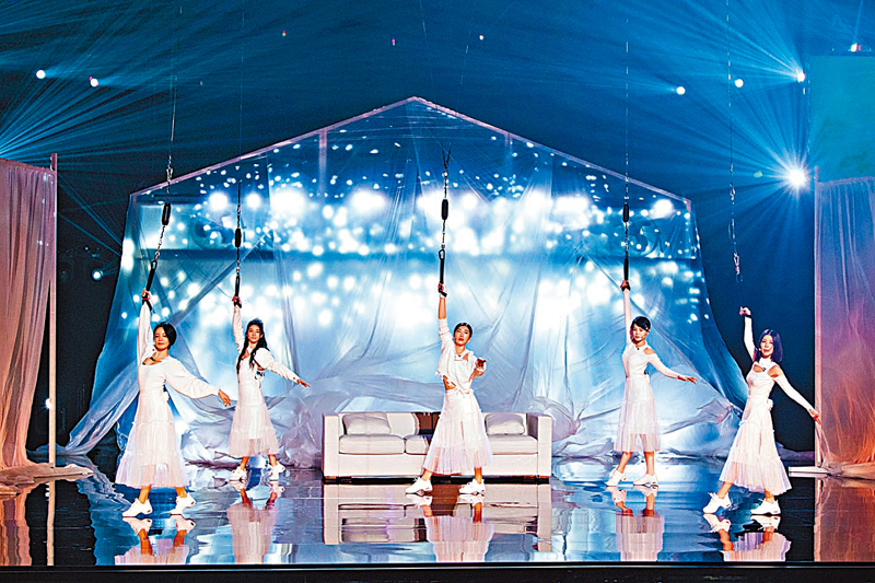 香港文匯報訊 內地綜藝節目《乘風破浪3》最新一集正進行第三次公演比賽,胡杏兒聯同徐夢桃、許茹芸、黃奕及柳翰雅一隊,眾人在表演前都積極訓練及綵排。在結束表演後,姐姐們紛紛露出右手,展示出被威吔箍出來的傷痕,阿雅更特別講到大家都是帶傷上場,杏兒對此回應:「今次是唱秀舞台,跟奧運冠軍國家隊自由式滑雪運動員徐夢桃一隊、她本來就是個開心果,跟她一隊很開心。第三次公演要吊威吔表演,跟平時拍戲吊威吔非常不同,而且辛苦很多、難很多,我們都練到手非常痛。」