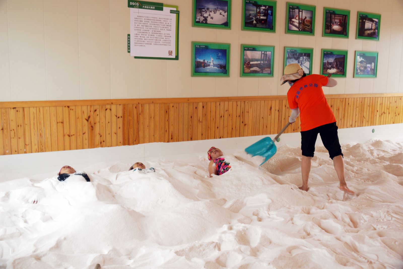 (香港文匯網記者 宋偉 大連報道)中國首座海鹽主題公園7日在遼寧大連開園,市民遊客爭相體驗濃海水漂浮、古法制鹽、鹽場小火車以及鹽浴等項目。該公園坐落於全國四大海鹽場之一、始建於1848年的原大連復州灣鹽場。