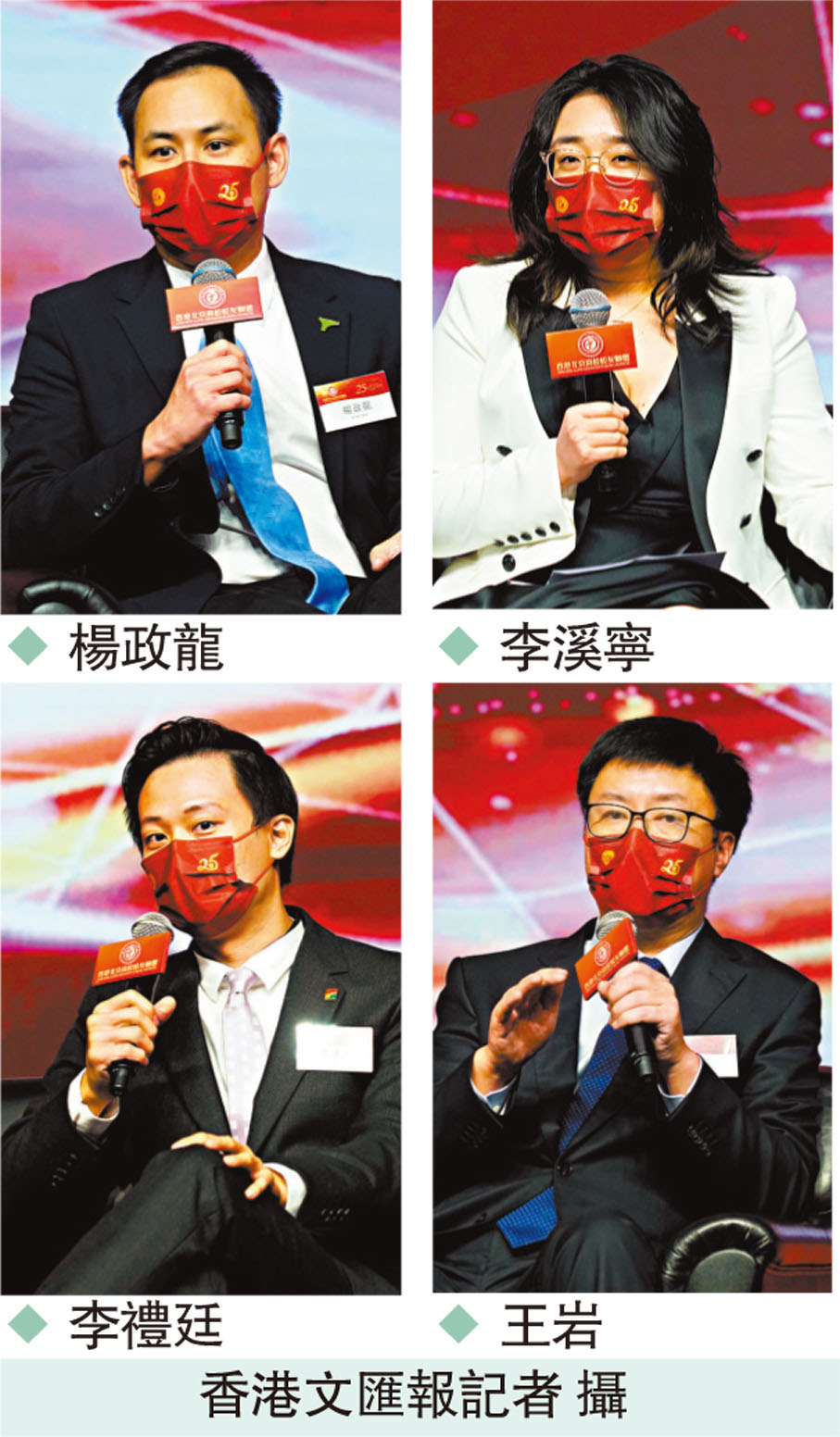 香港菁英會執委會公關及傳訊委員會副主任李禮廷以自身經驗分享香港青年如何融入粵港澳大灣區。他表示,香港菁英會組織青年參加國情班,讓大家要先了解國家現況,同時年輕人要學好普通話,這些都是重要的準備工作,然後青年人就要行動起來,走入大灣區內地城巿,他們可以考慮參加一些創業活動,透過內地的孵化器,走入內地市場,內地有不少天使基金或投資者很願意助力年輕人創新創業。