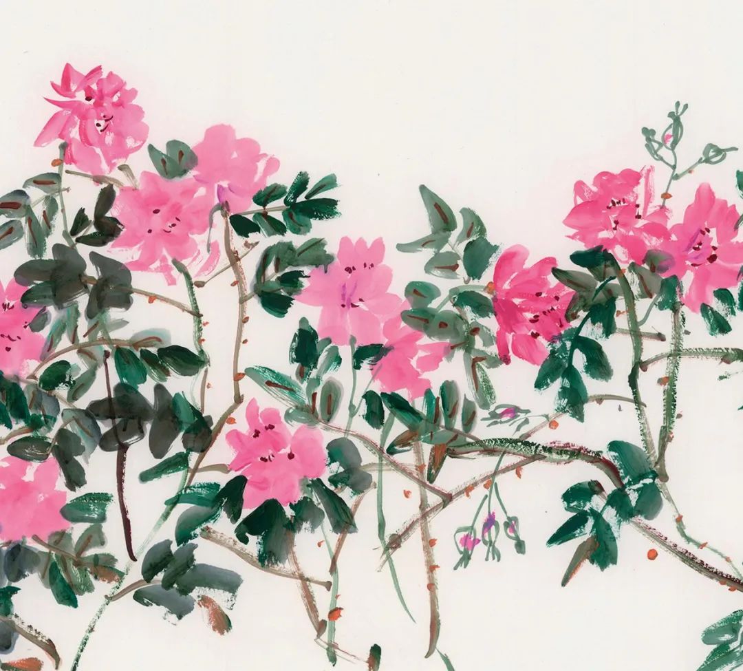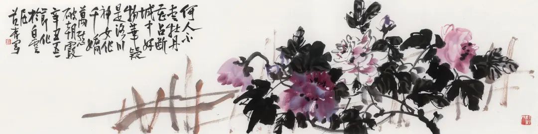 范存剛花鳥畫屬於大寫意一路。「大寫意」一說,溯源上自吳道子、梁楷、牧溪,近世則稱吳昌碩、齊白石為翹楚。范君堪稱是出色的後繼。「大寫意」顧名思義,「大」是首義。大非指尺幅之大,而是醉眼向天,解衣磅礴,直抒胸中塊壘,雖盈尺之畫,具百尋氣象。杜甫有句「大城鐵不如,小城萬丈餘」似可況之。