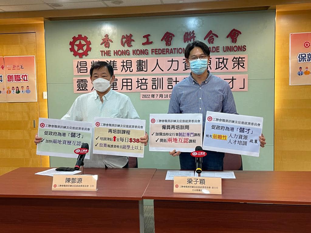 工聯會副會長、職訓就業委主任陳鄧源引述數據指,帶津貼的再培訓課程既能吸引打工仔女在工餘時自我增值,亦有助勞工轉型。而疫下高學歷人士也面對失業及轉業問題,他建議進一步優化現時恆常再培訓課程,例如將課程報讀資格放寬至副學士以上人士,並將培訓課程每日津貼提升至384元,以吸引更多人士報讀。