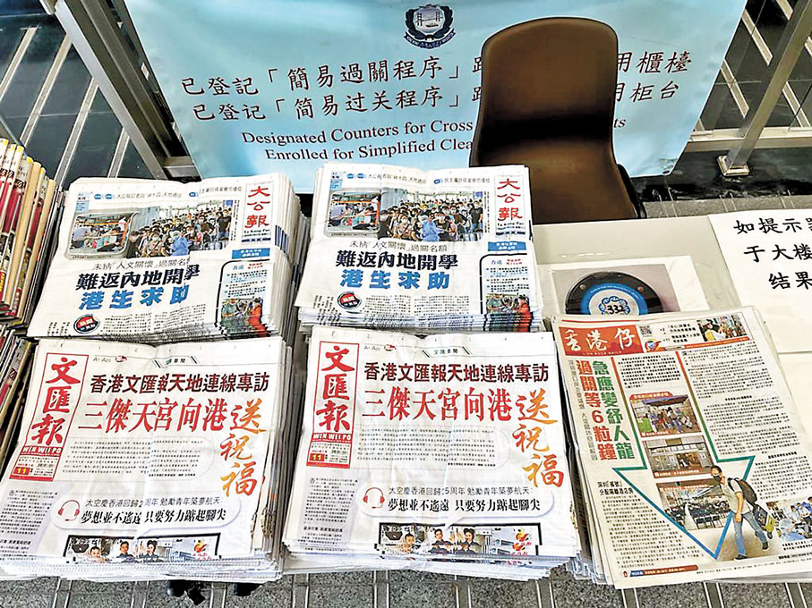 香港文匯報訊 近日深圳灣口岸大排長龍,大批市民等候數小時才可過關。為減輕等候人士焦慮,更方便他們可及時獲取豐富的時事資訊和防疫信息,香港大公文匯傳媒集團經與香港特區政府入境事務處協商,決定從昨日起每日為深圳灣口岸港方區域配發《大公報》、《文匯報》和《香港仔》三報,受到過境旅客的關注和歡迎。昨日記者所見,多位過關人士主動領取報紙,在等候期間閱讀消遣。有讀者更稱讚,雖然即將離境,但口岸一份報紙能將「港味」傳遞更遠一程。