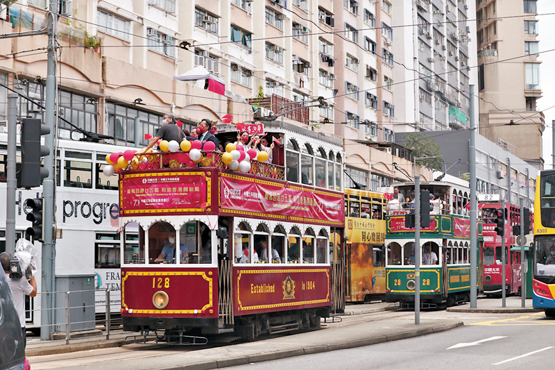 自1904年起,香港電車便於港島北部沿海岸線行走,穿梭港島東西,見證香港的興旺發展。在今年7月1日香港回歸祖國25周年之際,中國太平保險集團舉辦以「慶祝回歸廿五載·和諧香港開新篇」為主題的免費電車乘車日活動,與全港市民共享節日的歡愉,也共同見證香港回歸25周年這個珍貴和喜悅的時刻。電車當日假石塘咀城西道電車站舉行啟動儀式,隨後展開6小時的電車巡遊慶祝活動,寄寓香港未來發展一帆風順,「一國兩制」偉大實踐邁向新征程,願市民在繁榮安定的生活中延續歡聲笑語,共同富裕,共享太平。在電車陪伴香港人的百多年間,其實如此免費乘車的紀念活動不勝枚舉,香港人其實在屬於自己獨有的文化交通工具中,見證了一次又一次的大事件。