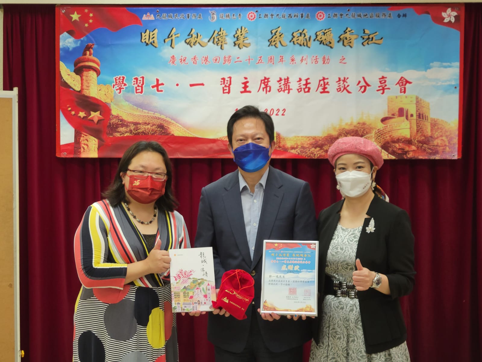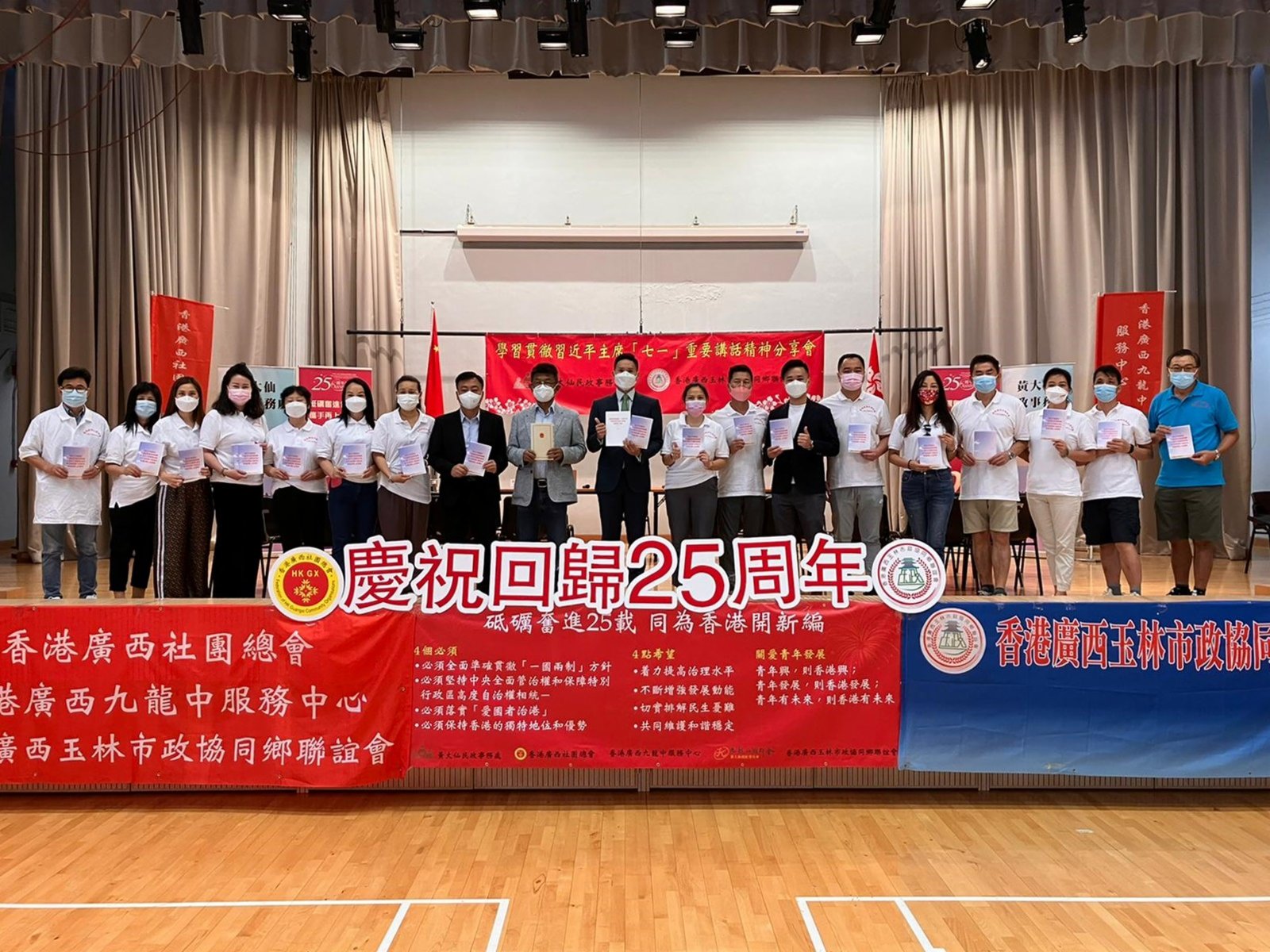 黃大仙民政事務處亦繼7月7日及11日舉行座談會後,昨日(12日)聯同香港廣西玉林市政協同鄉聯誼會,在鳳德社區中心合辦「學習貫徹習近平主席七一重要講話精神分享會」,邀請香港廣西玉林市政協同鄉聯誼會會長文頴怡、永遠會長曹永牟及常務副會長兼秘書長余靖浵,香港廣西九龍中服務中心主任吳金龍,民建聯黃大仙支部副主席潘卓斌及黃大仙北分區委員會主席陳英為主講嘉賓。黃大仙民政事務專員黃智華亦在分享會上致辭。超過120人出席座談會,與會者包括香港廣西玉林市政協同鄉聯誼會會員、黃大仙區內居民及中小學生。