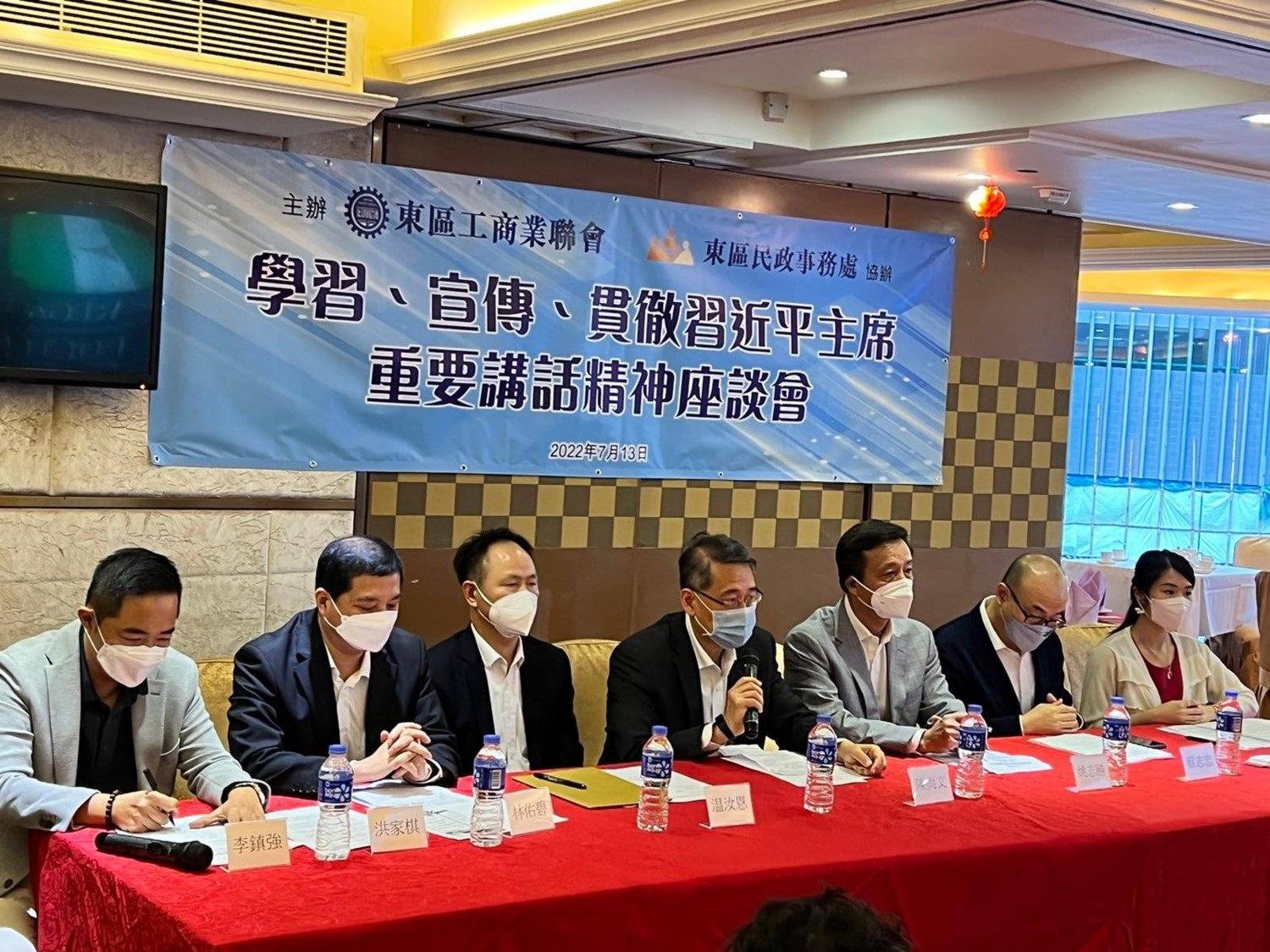 東區民政事務處今日(13日)聯同東區工商業聯會,在炮台山舉辦「學習、宣傳、貫徹習近平主席重要講話精神座談會」,邀請港區全國政協委員兼中國和平統一促進會會長姚志勝、香港中聯辦港島工作部二級巡視員溫汝恩和立法會議員李鎮強作主講嘉賓。東區民政事務專員陳尚文亦在會上發言。約40人出席今日的座談會,與會者包括東區工商界人士。