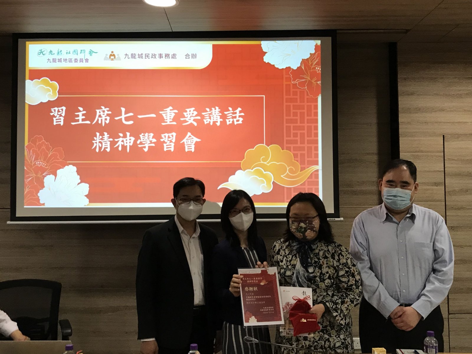 九龍城民政事務處則在7月10日與九龍社團聯會九龍城地區委員會在九龍城政府合署舉辦「習主席七一重要講話精神學習會」,以及昨日與工聯會九龍西辦公室和龍騰志青在工聯會工人俱樂部舉辦「學習七一習主席講話座談分享會」。兩個座談會分別邀請中聯辦紫荊研究院教研處副處長陳素婷博士,以及資深傳媒人郭一鳴為主講嘉賓。他們全面的講解讓地區人士深入領悟習近平主席重要講話的精神,而參加者亦積極提問。兩場座談會合共約有140名地區人士參加。