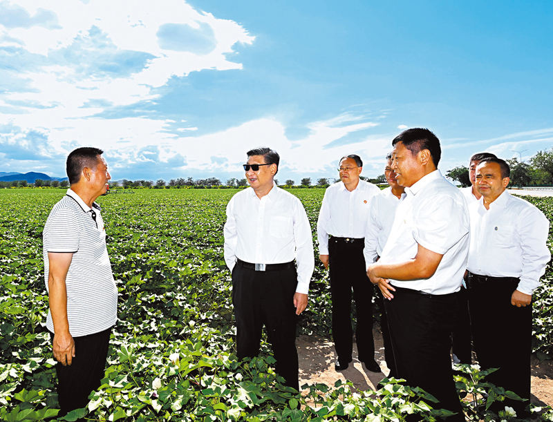 在農一連棉花種植基地,習近平走進田間,察看棉花長勢,向正在田間勞作的種植戶、農技人員詢問棉花種植、銷售和家庭收入等情況。在九連蟠桃種植園,習近平對這些年連隊鼓勵和支持職工發展種植養殖業、生態觀光旅遊和農家樂產業,增加職工收入的做法表示讚許。習近平指出,兵團農業機械化程度高,農業規模化生產、產業化經營條件好,在糧棉油、果蔬生產等方面優勢明顯,要在保障我國糧食安全和重要農產品供給方面發揮更大作用。要落實好黨中央支持兵團發展的政策,發揮兵團優勢,強化農業科技和裝備支撐,因地制宜發展優勢農產品、壯大優勢產業,促進農牧業綠色高效發展。 ◆綜合新華社及央視新聞客戶端
