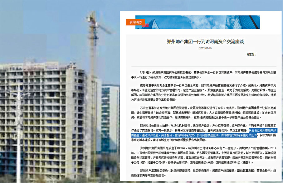 受「停貸」風波影響最大的河南鄭州,為了阻止風險蔓延,河南資產管理有限公司周二(19日)於網站發出聲明指,河南資產管理有限公司和鄭州地產集團,正計劃聯合設立鄭州市地產紓困基金,擬通過資產處置、資源整合、重組顧問等方式,參與問題樓盤盤活、困難房企救助等解圍紓困工作。◆香港文匯報記者 殷考玲