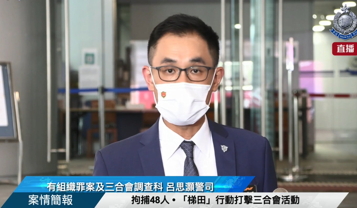 呂思灝說,在經過長時間的調查後,警方鎖定該犯罪集團的骨幹成員,並於今日凌晨採取行動,搗破7個位於油麻地、深水埗、旺角及元朗的非法賭博場所,當中主要為俗稱「打魚機」的賭檔。行動中共拘捕48人,包括35男13女,年齡介乎21歲至63歲,當中1人為主腦、12人為骨幹成員,他們報稱為商人、司機及拳館教練等,以及35名賭客,罪名包括涉嫌「洗黑錢」、「以三合會社團成員身份行事」、「自稱三合會社團成員」及「經營賭博場所」等。警方亦在現場檢獲約200萬元港幣現金、10隻值約350萬元的名貴手錶、2部總值240萬元的名貴跑車,以及一批賭具,包括釣魚機、麻雀枱、手機及電腦等等。