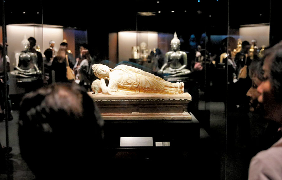 藏品的時間橫跨1,700多年(由公元2世紀至公元1911年),而且地域遼闊,囊括東亞的中日韓、南亞的印度、斯里蘭卡和尼泊爾、東南亞的印尼和中南半島諸國(泰柬緬)。博物館策展人頗有心思地以四個主題:護法神威、妙變神通、慈悲誓願、梵宇佛光等作串連,在不同空間裏展示一尊尊佛教中的護法天王、弟子及羅漢、菩薩與諸佛的形象,千姿百態,個個都眉清目秀,栩栩如生,令人嘆為觀止。我自己彷彿打開了一本波瀾壯闊的立體佛教藝術故事書,沿着絲綢之路訴說佛教文化流播軌跡,短短數小時便上了一堂亞洲佛教藝術史課。