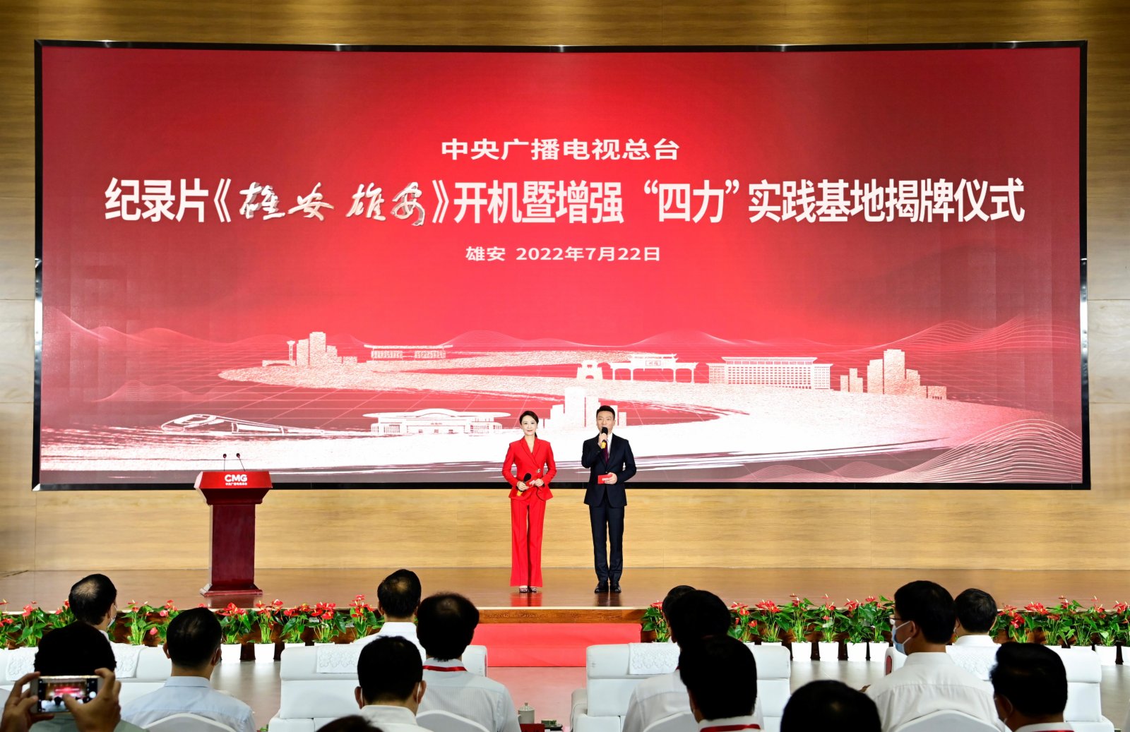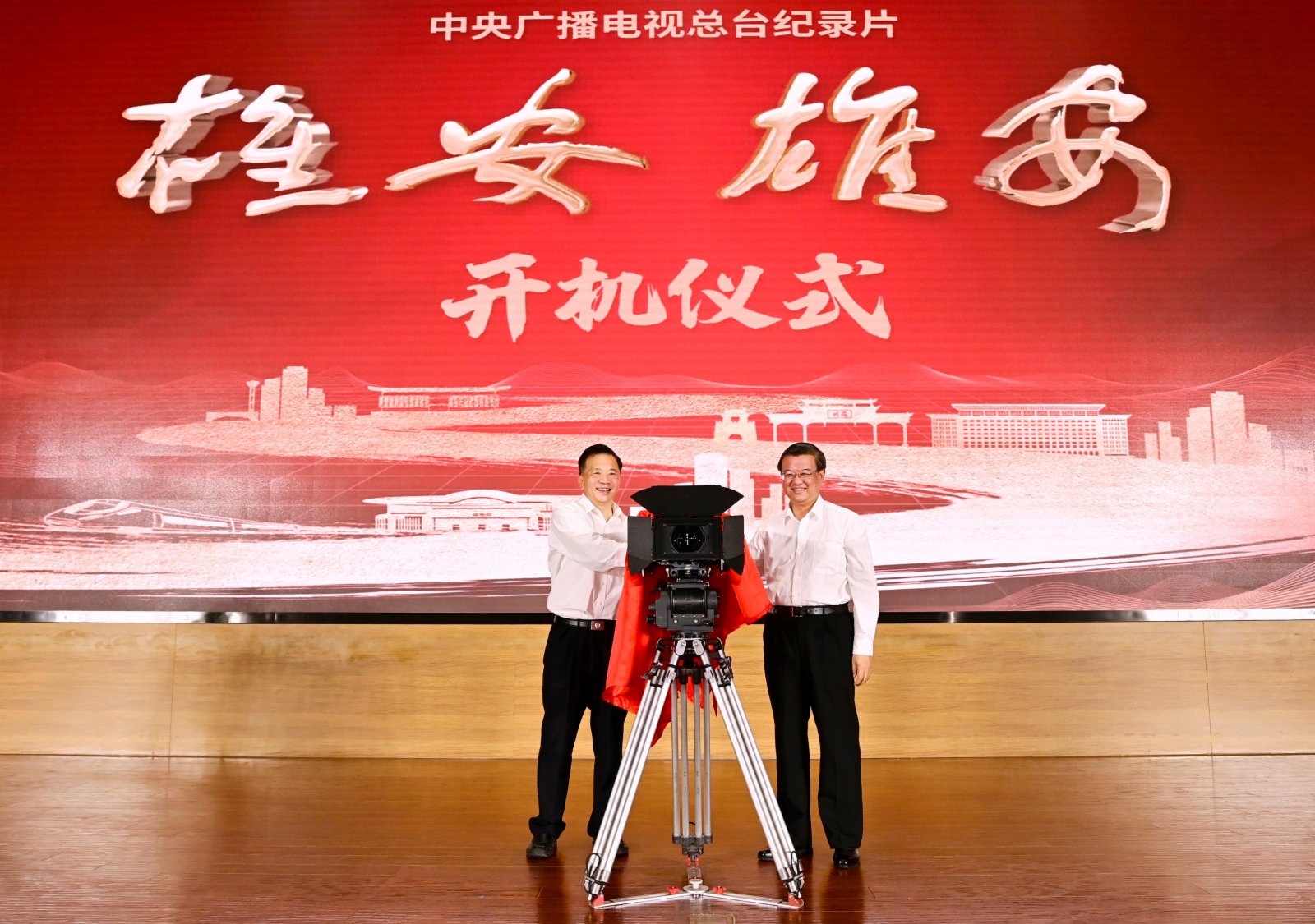 中宣部副部長、中央廣播電視總台台長慎海雄與河北省委書記倪岳峰出席儀式並致辭,共同為紀錄片《雄安 雄安》開機啟拍。