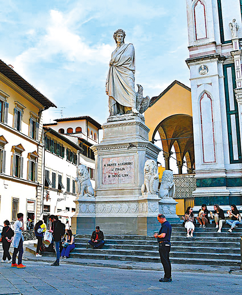 但丁是意大利中世紀著名詩人、歐洲文藝復興時代的先驅之一,以《神曲》、《新生》等代表作聞名於世。在他的故鄉佛羅倫斯,到處可以尋覓到但丁的「身影」,從矗立在聖十字大教堂前的但丁雕像、但丁故居博物館,再到但丁的著作和相關紀念品,無處不凸顯這位意大利文豪與城市的深刻淵源。