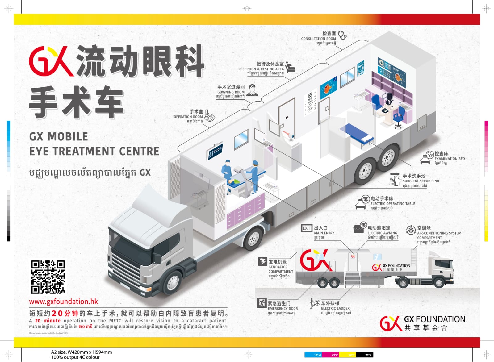 即將投用的流動手術車為內地製造,在原有基礎上,針對「一帶一路」沿線國家的不同環境條件還做了定製化,如東非版增加水箱防止用水不便,東南亞版提高車身防止水患等。車內設備完善,除了最先進眼科手術儀器外,還有5G、遠程轉播鏡頭,支持遠程醫療。因應新冠疫情,還設置了負壓手術室。每一架車配備4名醫護人員,其中一名醫生做檢查,另一位做手術,兩名護士提供手術支援及病例登記等工作。