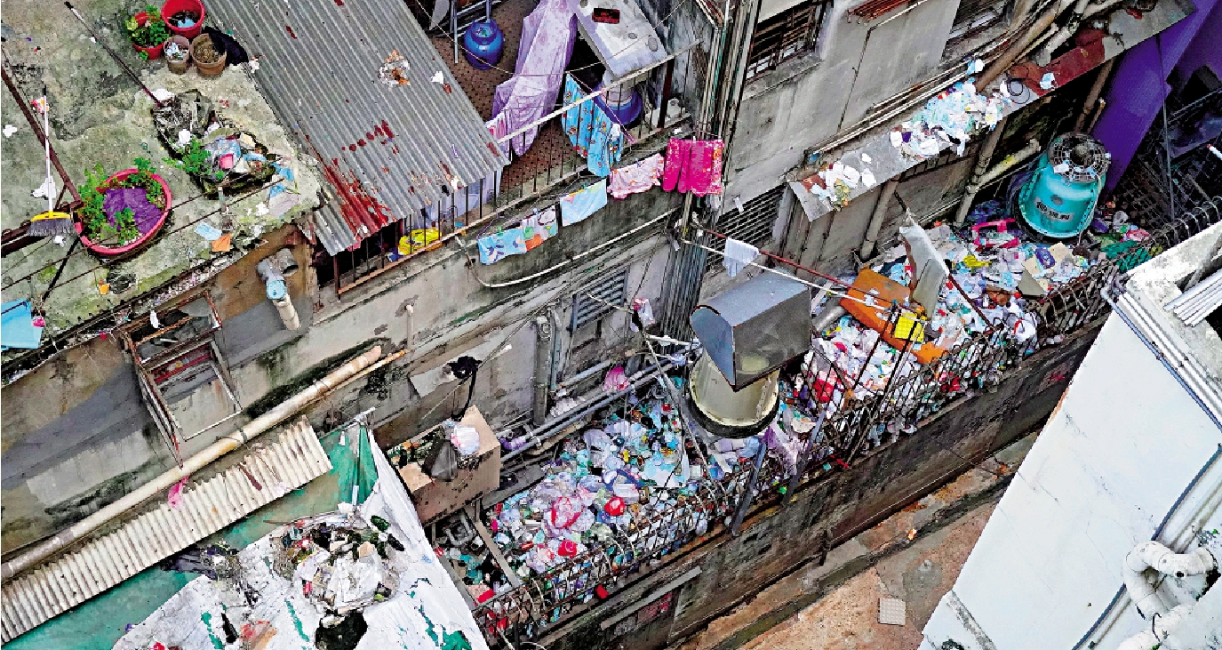 (大公報記者 伍軒沛、林少權、蔡文豪)「大廈無清潔工人、無公家垃圾桶,垃圾只能扔到樓下的路邊垃圾桶。屋企根本無地方擺垃圾,日後實施垃圾徵費等於多了支出,我更會扔到樓下。」住在無人管理「三無大廈」的恩姐說,不少居民習慣非法棄置垃圾,天井變成垃圾崗。