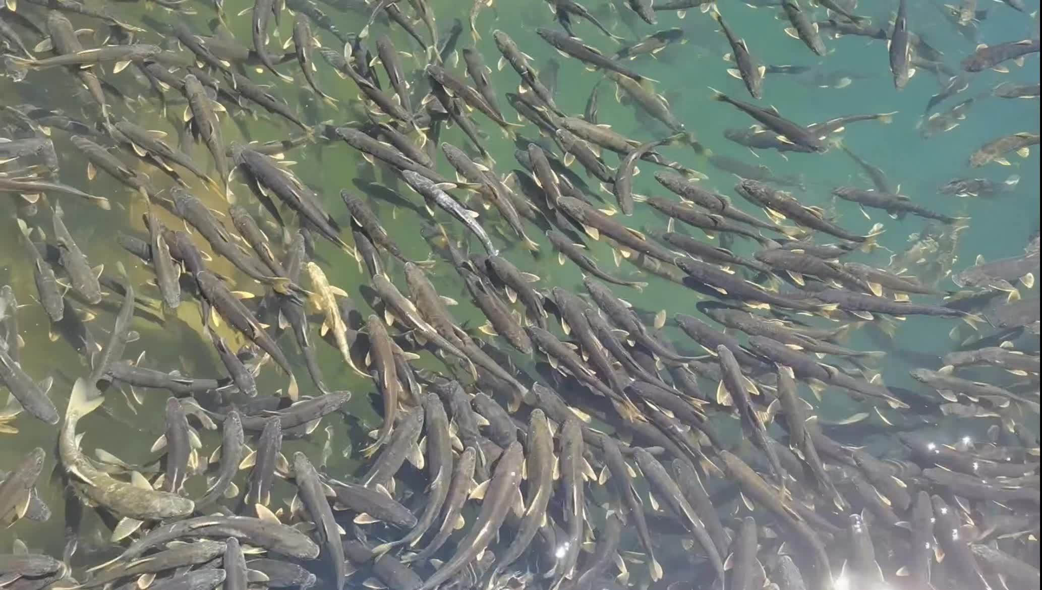 據了解,每年端午至立秋,是裸鯉洄遊的季節,青海湖內成千上萬的產卵裸鯉在河口地帶集結,然後成群結隊逆流而上,洄遊至青海省剛察縣各條大河,形成「半河清水半河魚」的奇特景觀,立秋後又返回青海湖。時值8月,在剛察縣沙柳河湟魚家園景區內,工作人員正在將人工培育的裸鯉魚苗放流至沙柳河,「今年我們已放流裸鯉魚苗1100萬尾。」工作人員告訴記者。