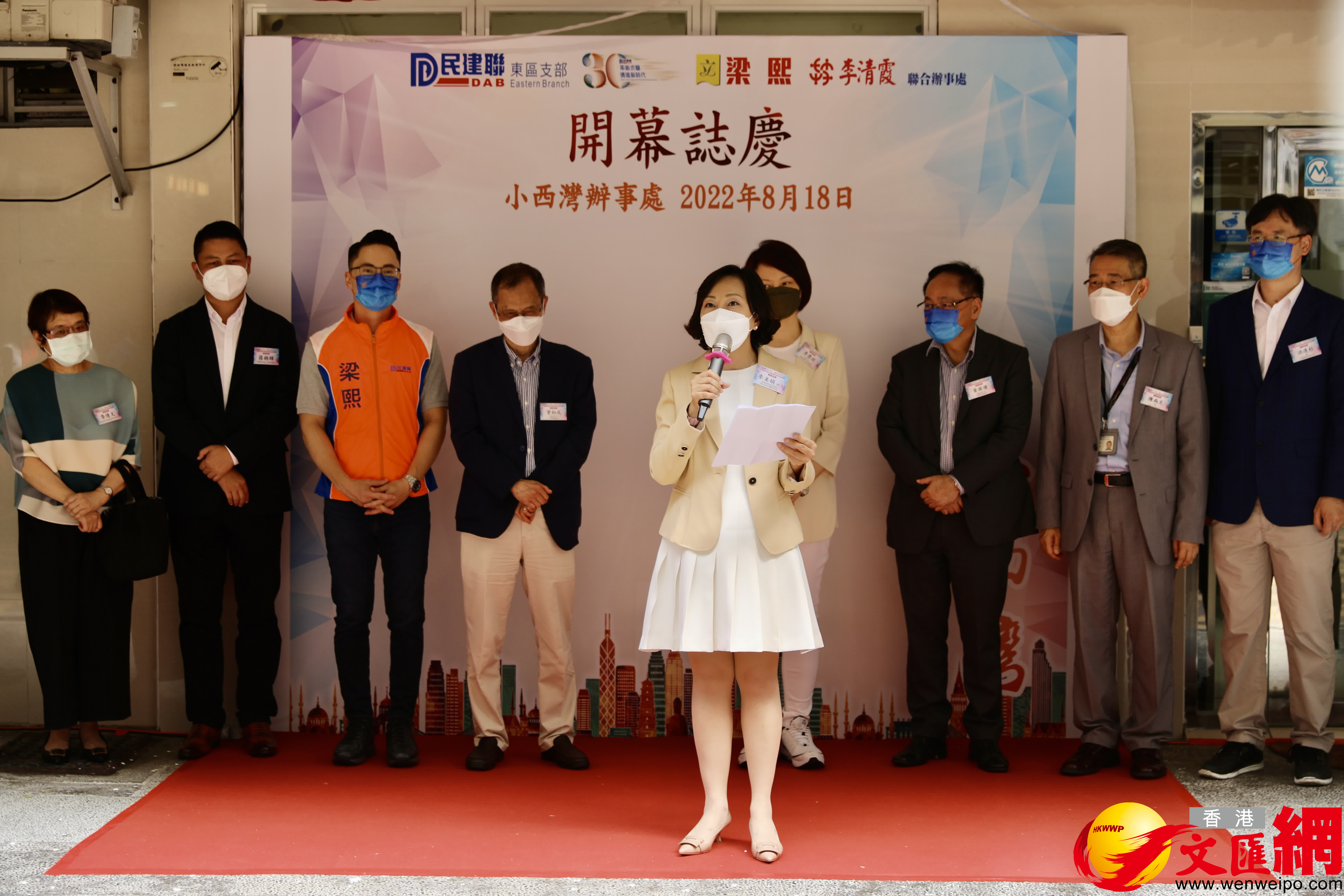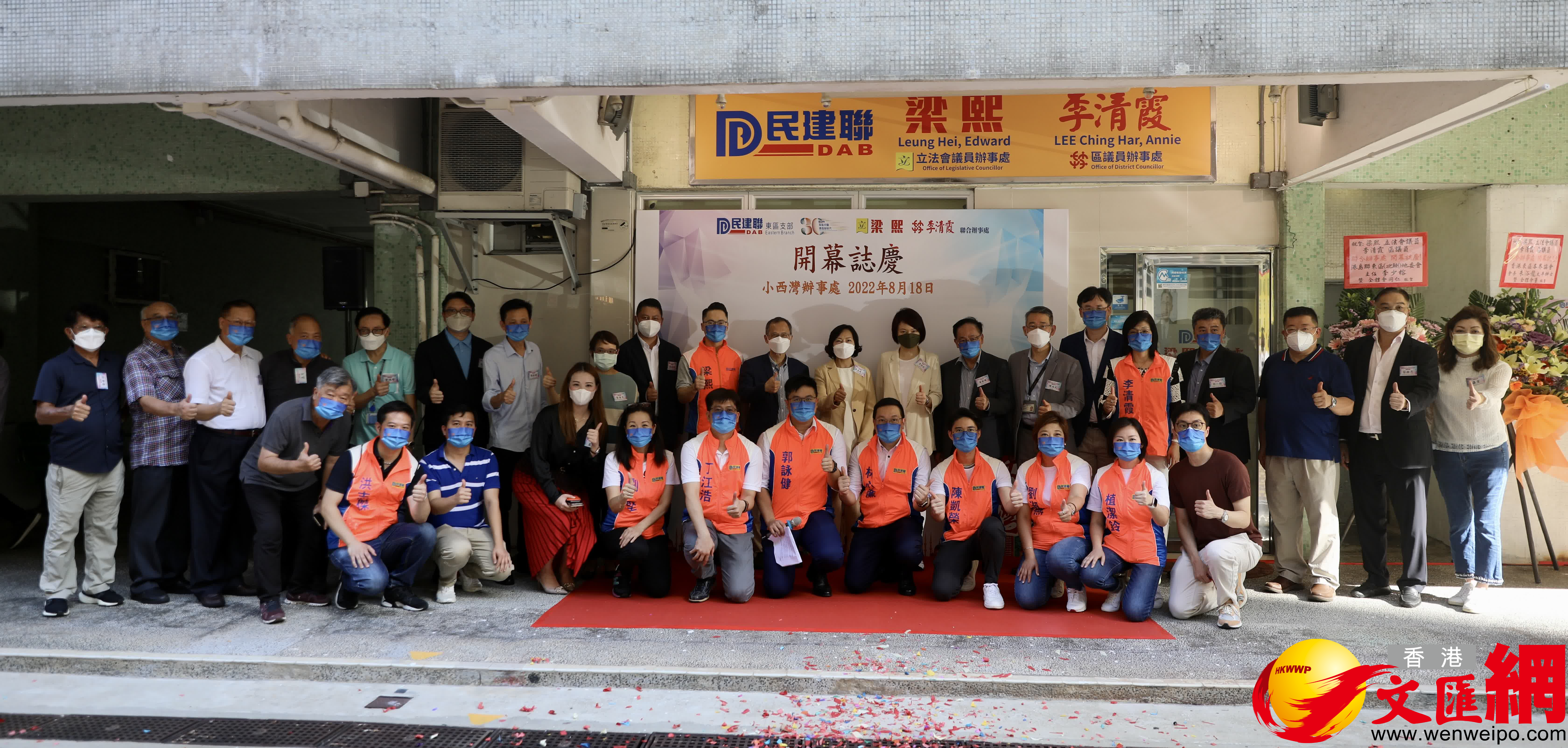 大公文匯全媒體報道:立法會議員梁熙、東區區議員李清霞聯合辦事處今日(18日)在小西灣邨瑞滿樓開幕,民政及青年事務局局長麥美娟、民建聯主席兼立法會議員李慧琼、民建聯會務顧問曾鈺成、民建聯會務顧問葉國謙等出席開幕禮。
