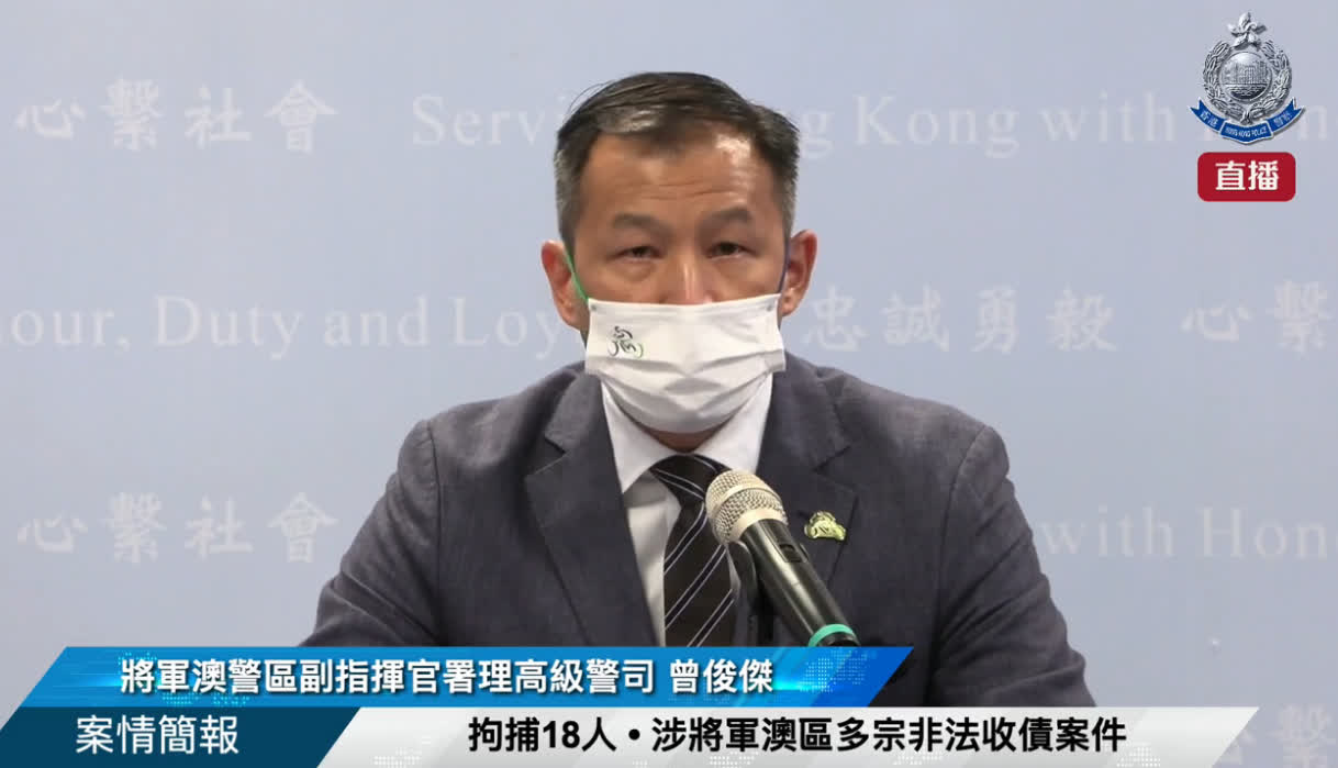 將軍澳警區副指揮官署理高級警司曾俊傑今日(18日)介紹案情指,警方早前注意到區內非法收數活動呈年輕化趨勢,并於8月12日至18日進行代號「銳將」的行動。行動中共拘捕18人,其中有12人未成年,最年幼者只是13歲的中一學生。這批未成年被捕者,多人涉嫌收取收數組的微薄報酬,前往淋紅油或塞鎖匙孔。