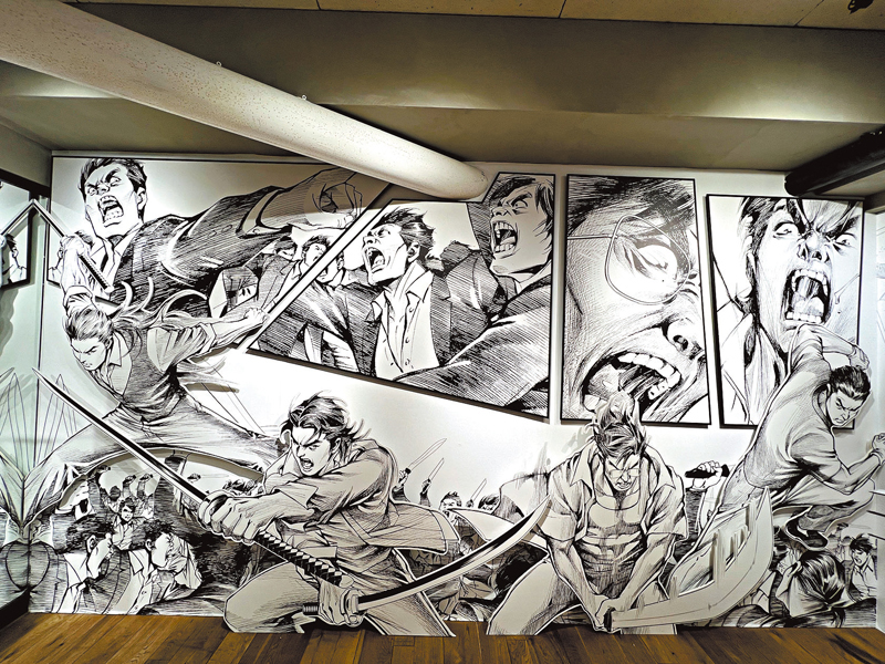 主筆倫裕國為了今次展覽,還原《古惑仔》經典情節「福田千人大戰」,重新親手繪畫,畫作放大在展覽場地的牆身上,訪客除了可觀賞港漫的獨特畫風外,亦可投入 漫畫當中,配合情節擺出不同「甫士」,成為漫畫中的一角!