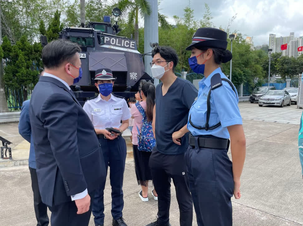 大公文匯全媒體報道:香港輔助警隊今日(20日)於九龍灣輔警總部舉辦學院結業會操及開放日,粵港澳大灣區青年總會主席吳學明、副主席陳志豪、張永達作為嘉賓出席開放日開幕典禮,並組織60多名總會成員及有意投考輔警的青年朋友參加開放日,深入了解輔警的職責、訓練內容及入職條件。