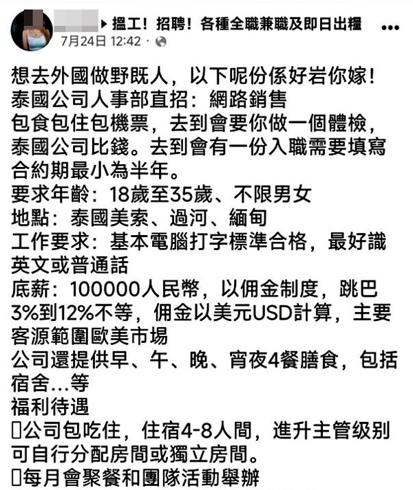 據了解,這宗案件源自網上情緣騙案,去年男事主吳錫明在網上結識一名女子並發展成網絡情人,至今年7月男事主被對方游說下,信以為前往泰國可獲酬100萬泰銖而被誘騙出境;惟男事主到達泰國後,即遭禁錮及沒收手提電話。