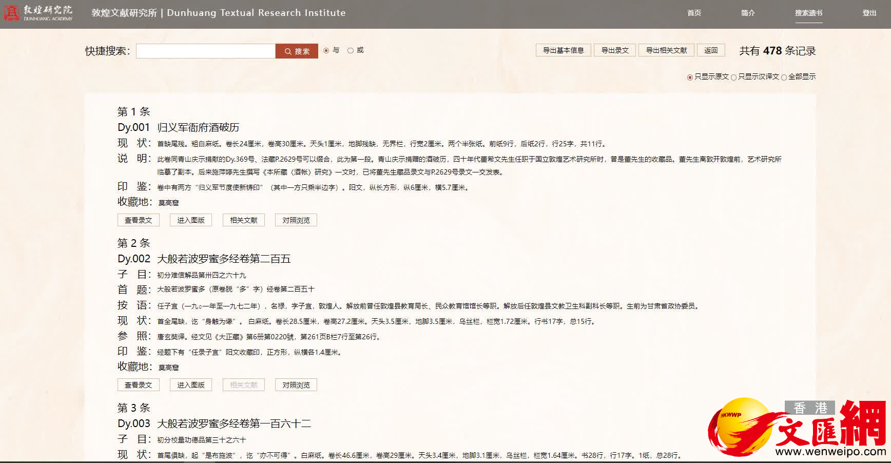 (香港文匯網記者 郭濤 甘肅報道)近日,敦煌研究院宣布,「敦煌遺書數據庫」正式上線。該平台是一項全球敦煌文獻資源共享平台,內容包括敦煌文獻的基本信息、數字圖像、全文錄文和相關研究文獻目錄四個部分,數據庫同時提供漢、藏文文獻的全文檢索和圖文對照瀏覽。