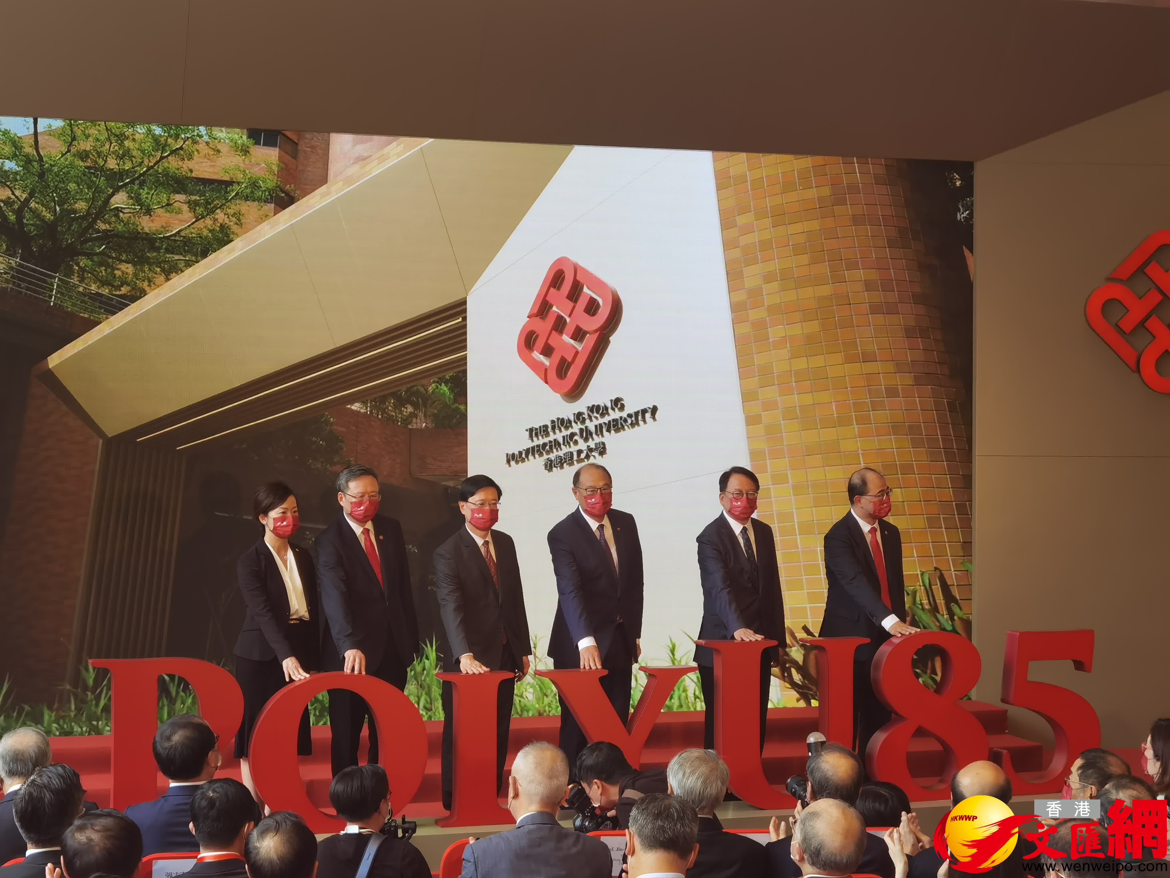 揭幕典禮上,與會嘉賓合唱國歌及理大85周年校慶主題曲。隨後,在兼任理大校監的特首李家超帶領下,政務司司長陳國基、理大校董會主席林大輝、校長滕錦光、常務及學務副校長黃永德,以及行政副校長盧麗華共同主持揭幕儀式。活動獲中聯辦青年工作部部長張志華、大學教育資助委員會主席唐家成及多間大學的校董會主席等多名嘉賓出席,連同理大校友和師生員工共500多人出席活動。