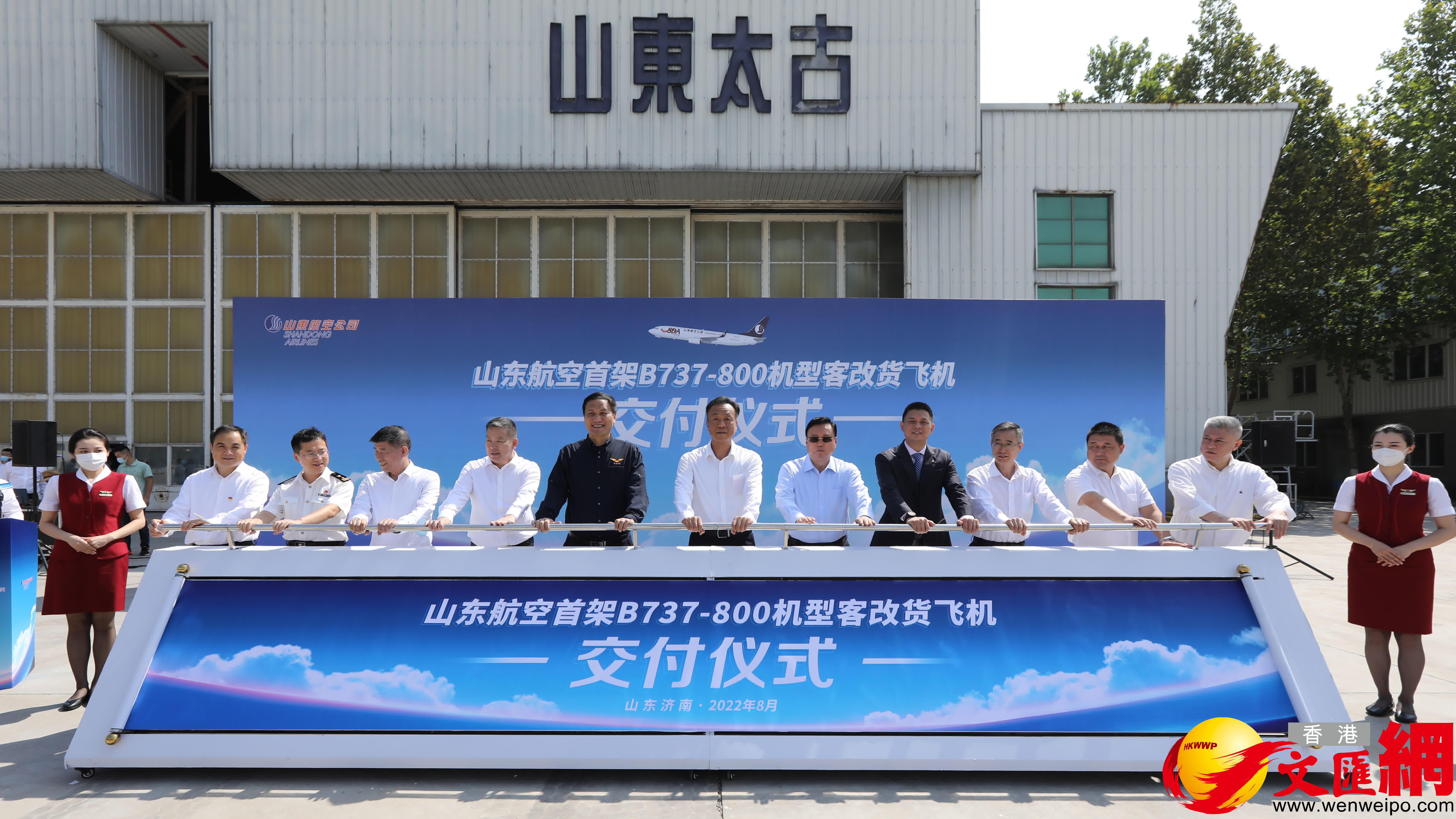 (香港文匯網記者 丁春麗、胡臥龍 濟南報道)8月31日上午,山東航空首架B737-800貨機交付儀式在山東太古飛機工程有限公司(以下簡稱「山東太古」)舉行。這也是山東太古執行和交付波音公司的第60架客改貨飛機,山東太古成為B737-800機型客改貨全球最大的交付中心。