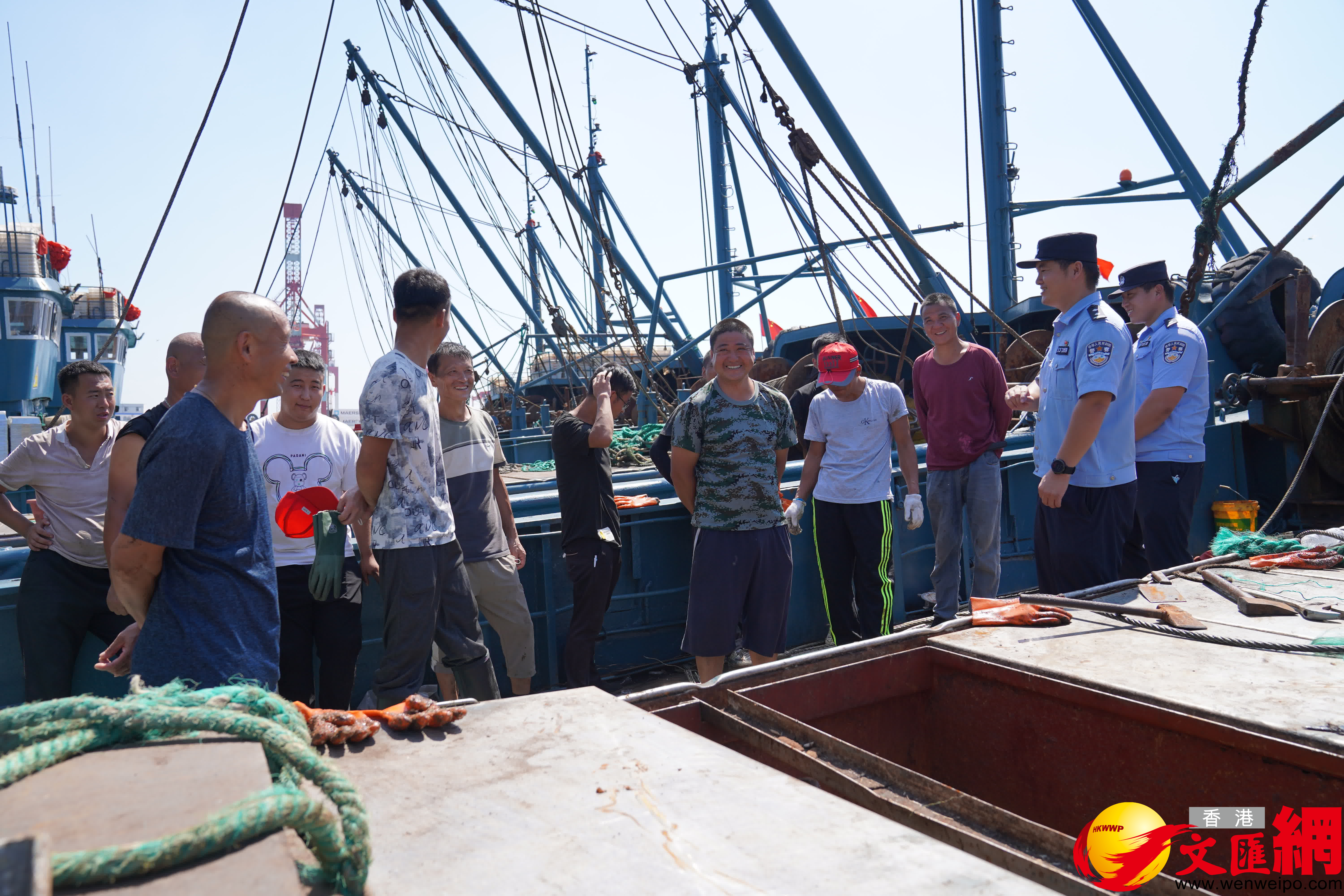 當日上午,在山東威海各漁港、碼頭,漁民們忙着檢修漁船、添置漁具、縫補網具、加冰加油、補給食物、懸掛旗幟。一輛輛運冰車穿梭在碼頭,將冰塊裝入漁船貨倉,起重機向船上吊運漁網、繩纜等捕魚設備,做好開漁前最後的準備工作。除了繁忙的漁船民,威海公安海岸警察也在幫助漁船民報備船舶信息、人員信息、出港信息,為漁民順利「開漁」上好「第一堂課」。