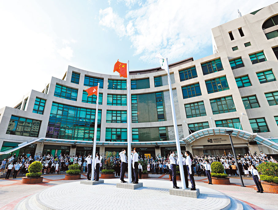 香港文匯報訊(記者 高鈺)本港大專院校陸續於本月開學。香港教育大學及中文大學均在昨日的開學日上舉行了升旗儀式,為新學年揭開序幕。教大表示,這是開學禮首度舉行升旗禮,共有超過350名師生出席,場面莊嚴。除了開學日,該校未來每個上課日均會於校園內升掛國旗,每個周一和特別日子亦會舉行升旗儀式。