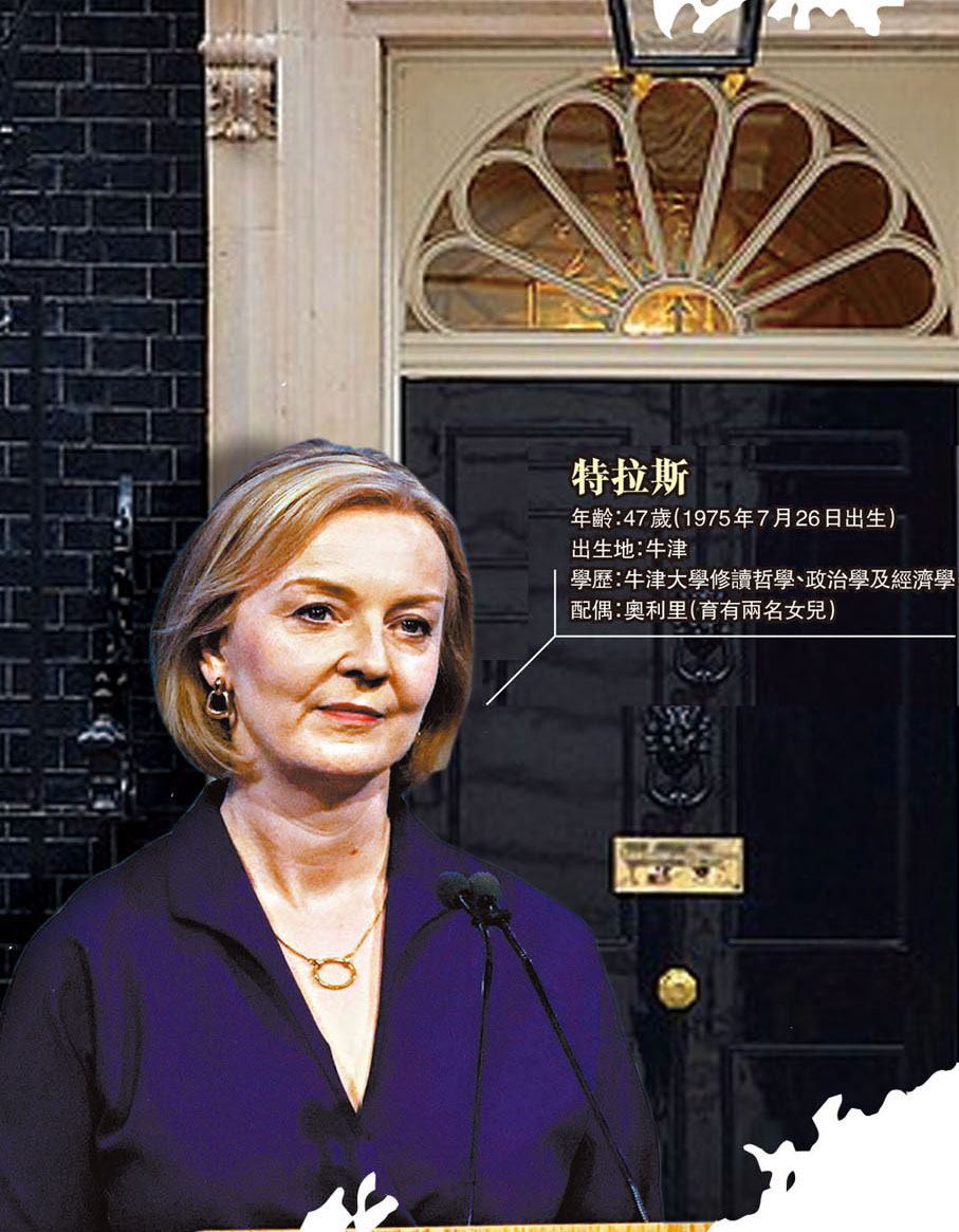 英國執政保守黨黨魁選舉經過近兩個月的投票後,結果昨日出爐,外相特拉斯以57.4%得票率勝出,她今日會接受英女王伊利沙伯二世任命成為新首相。特拉斯上任後首要任務是應對英國通脹飆升及民眾生活成本高漲問題,據報她計劃凍結英國家庭的能源費用兩年,涉資達1,000億英鎊(約9,019億港元)。英媒指出,特拉斯將接手自前首相戴卓爾夫人時期以來最差的局面,任內將面對重重挑戰。