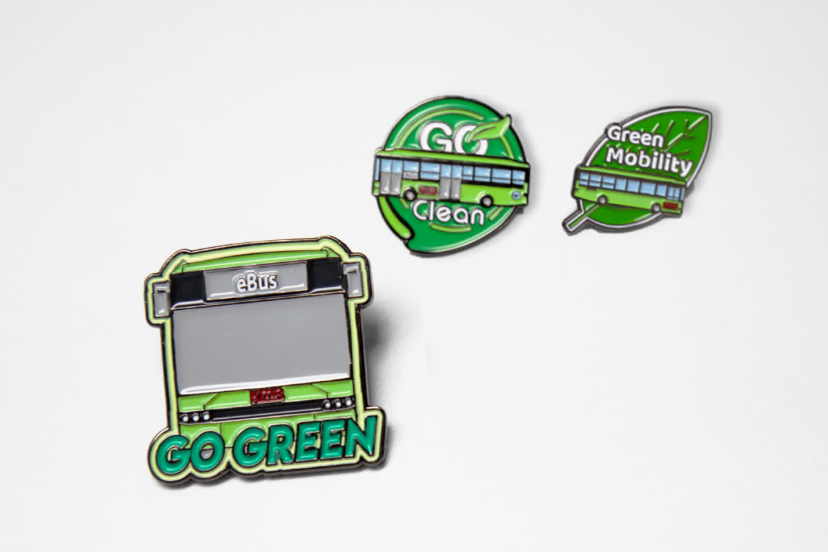 於213M線電動巴士首航當日,九巴將會向乘搭該路線電動巴士的乘客送出精美禮物,內含限量版電動巴士襟章,以及註明編號的乘搭證書,以作紀念。電巴襟章一套3款,分別有電巴車頭和兩側的造型,並寫有「Go Green」、「Go Clean」和「Green Mobility」,代表電巴集環保、潔淨能源和綠色運輸的嶄新乘車體驗。禮品數量有限,送完即止。
