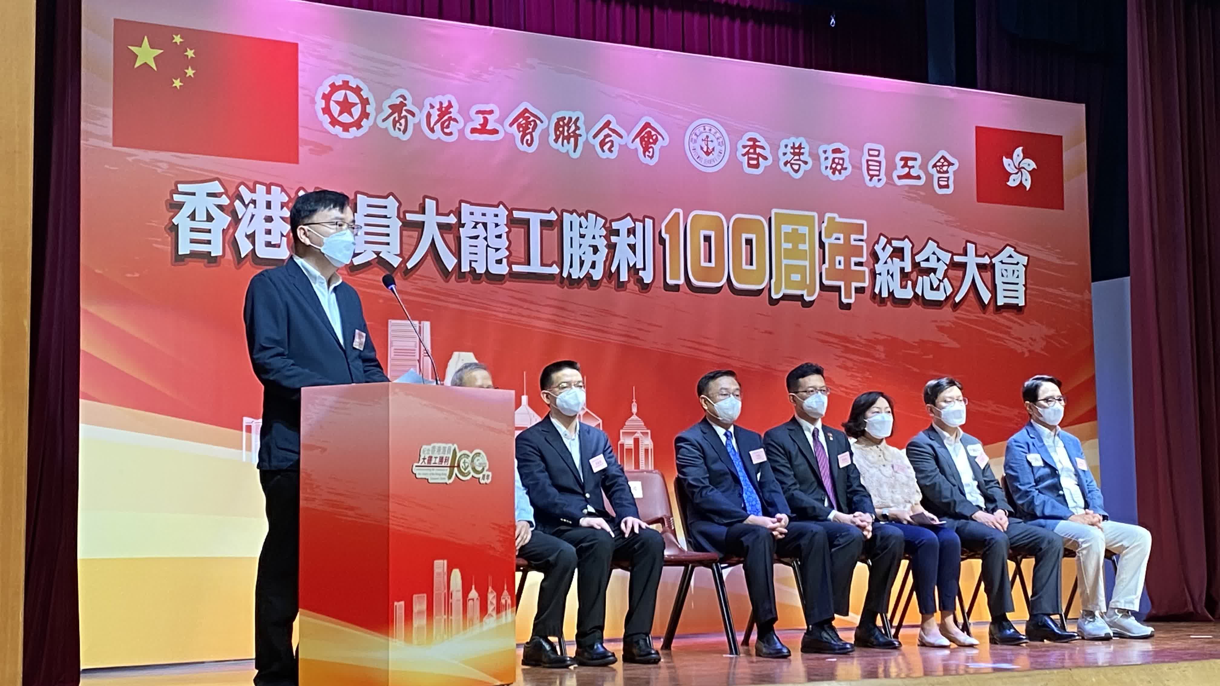 大公文匯全媒體報道:工聯會與香港海員工會今日(25日)舉辦「香港海員大罷工勝利100周年紀念大會」,社會各界約180人出席,場面盛大。工聯會會長吳秋北表示,大家重溫這段歷史,學習前輩愛國、正義、拼搏以及團結的精神,意義重大。