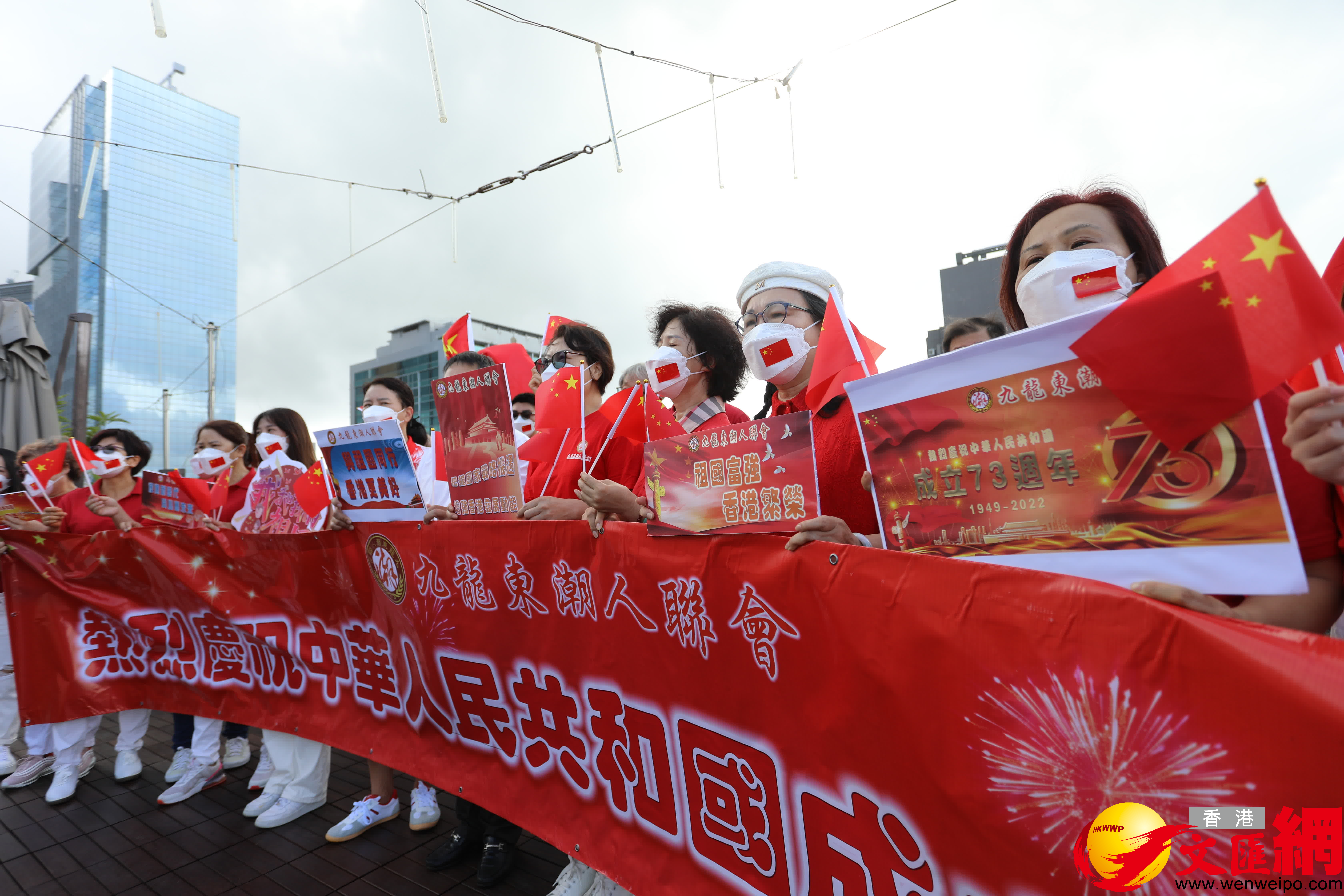 九龍東潮人聯會會長楊育城表示,今天是新中國73周年華誕,聯會一直秉持愛國愛港的傳統,從2019年開始,組織會員揮舞國旗和演唱愛國歌曲慶祝國慶,抒發愛國之情,祝福祖國繁榮昌盛。