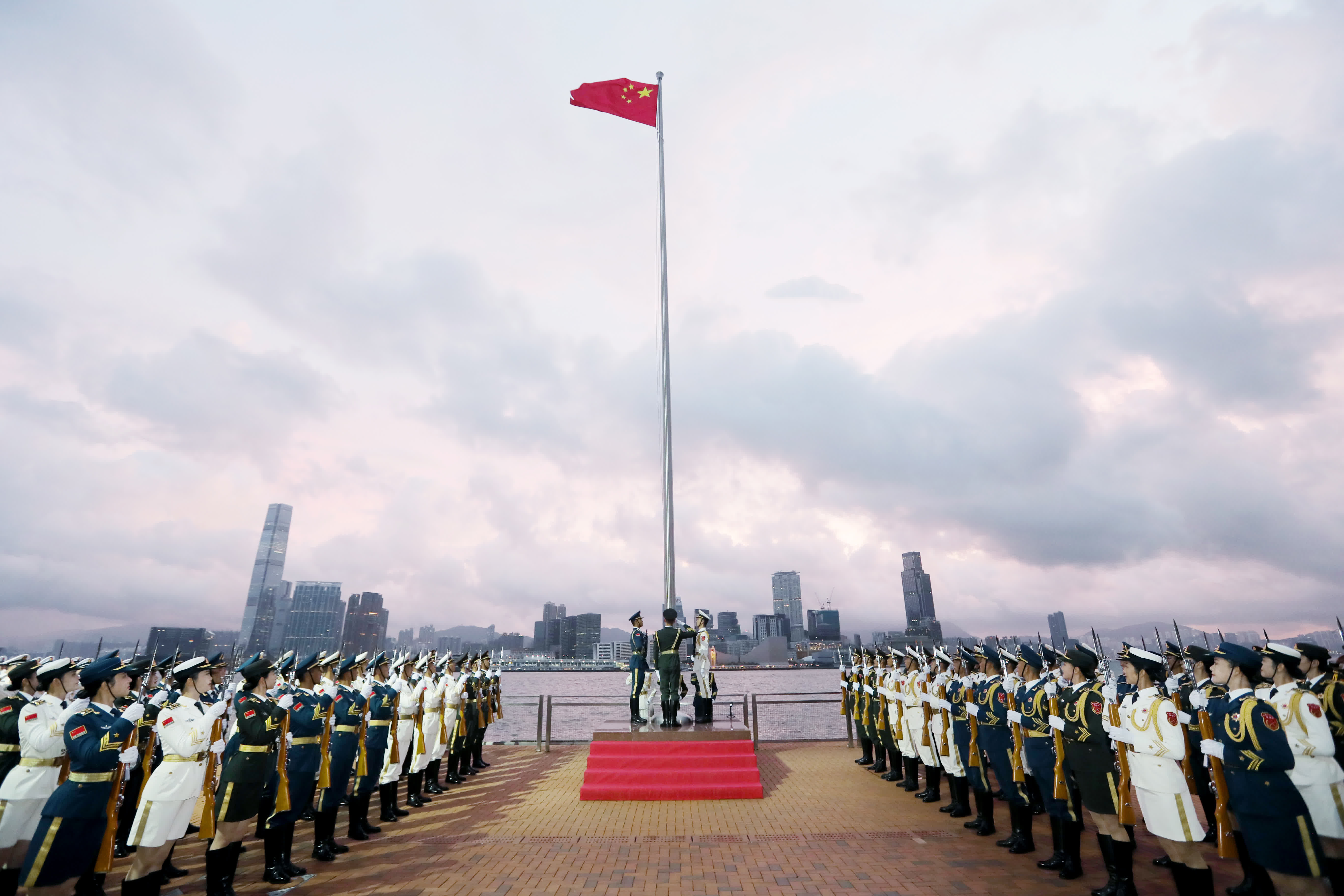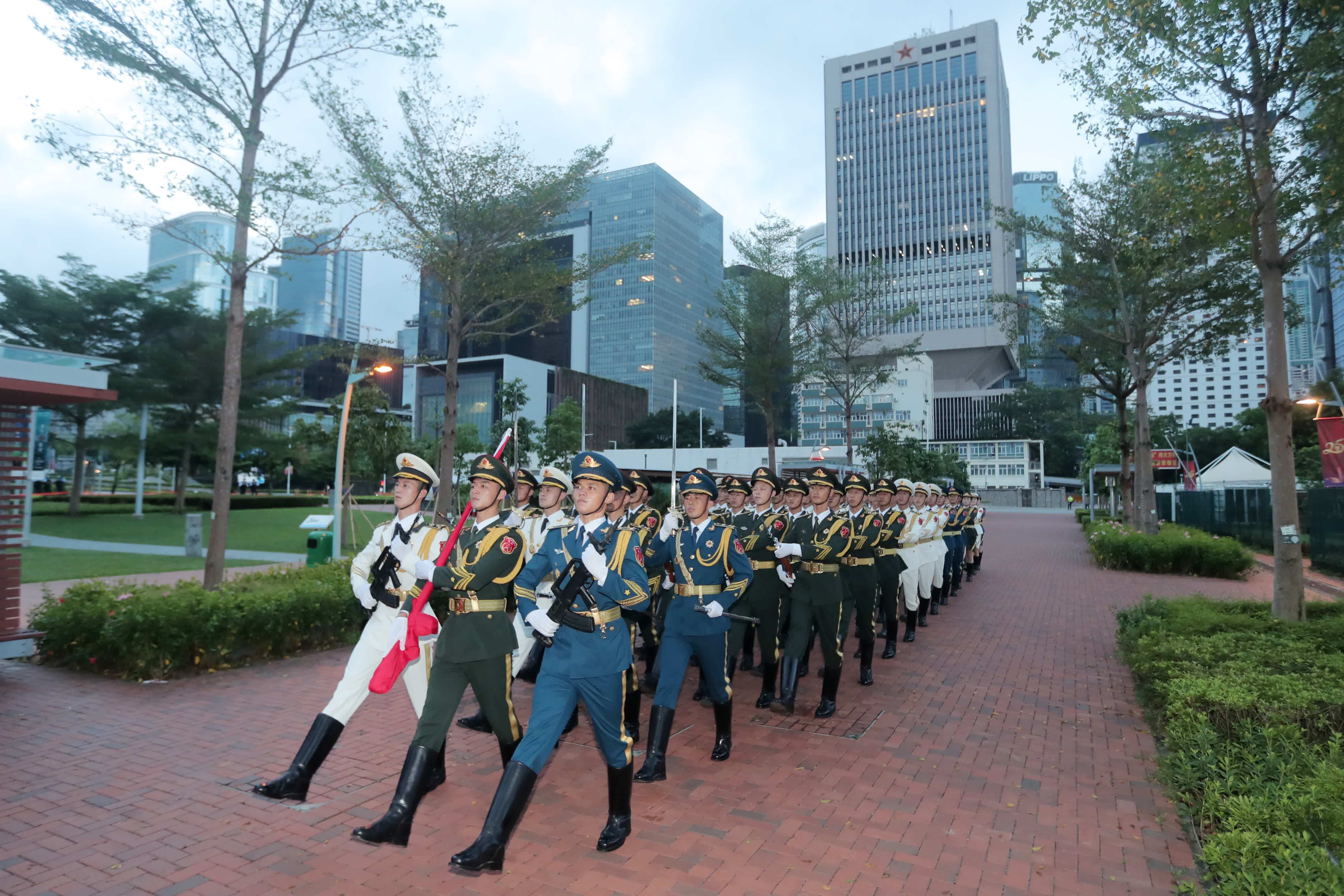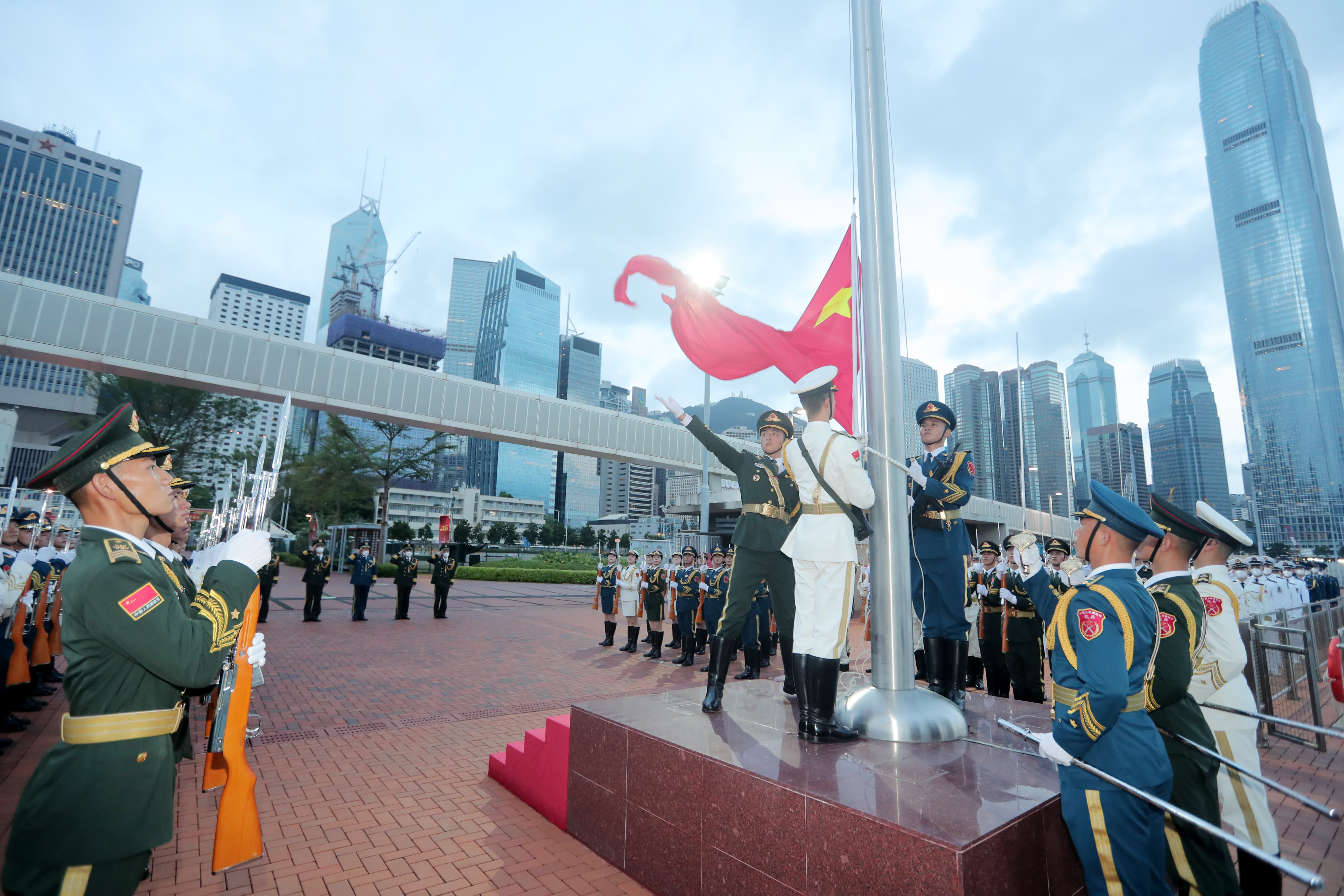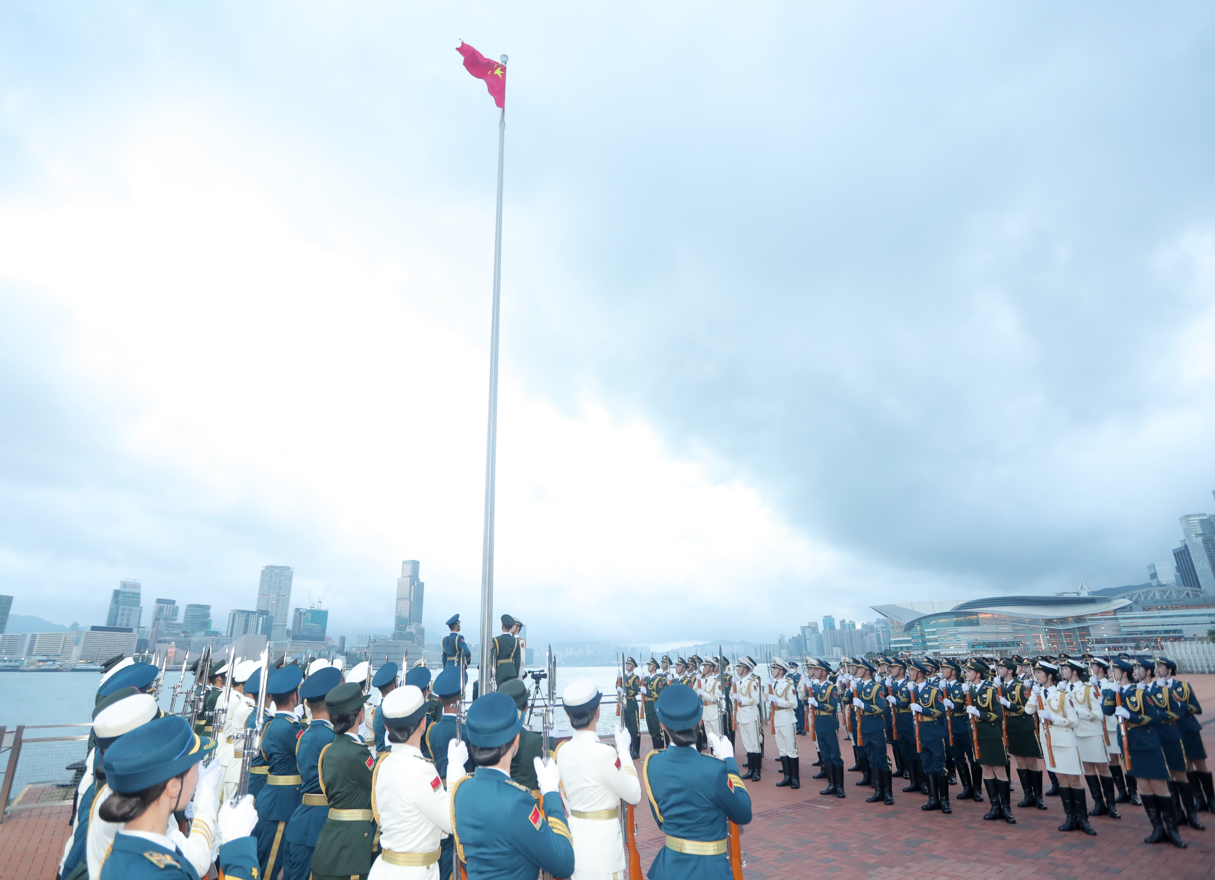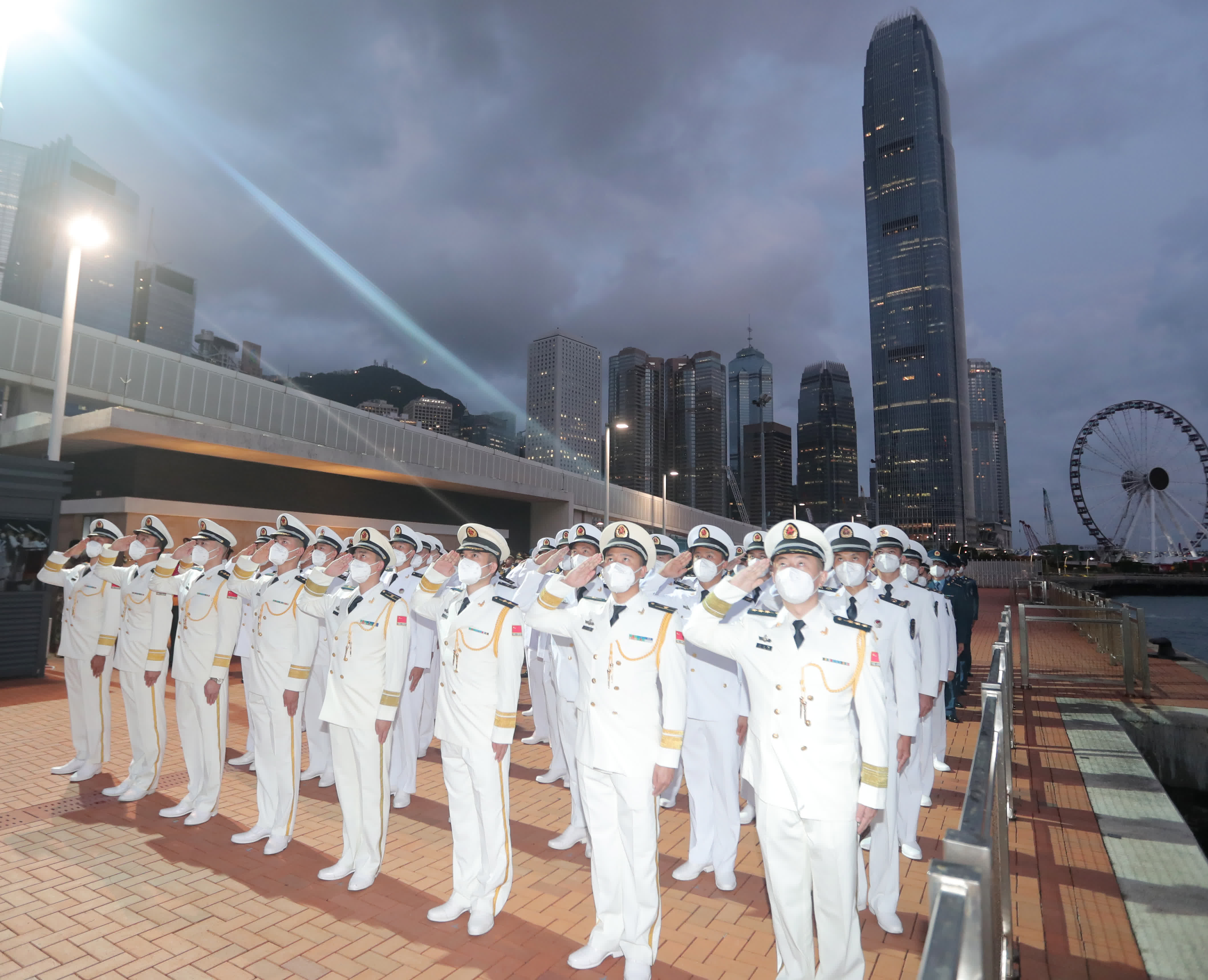 大公文匯全媒體報道:今日(10月1日)清晨,解放軍駐港部隊在中區軍用碼頭舉行升旗儀式,慶祝中華人民共和國成立73周年。駐港部隊表示,在新中國73周年華誕之際舉行升國旗儀式,是為教育基地廣大官兵,砥礪報國之志,投身強軍實踐,在新時代新征程上,踔厲奮發,勇毅前行。堅決完成黨和人民賦予的使命任務,為「一國兩制」實踐在香港行穩致遠作出新的更大貢獻。